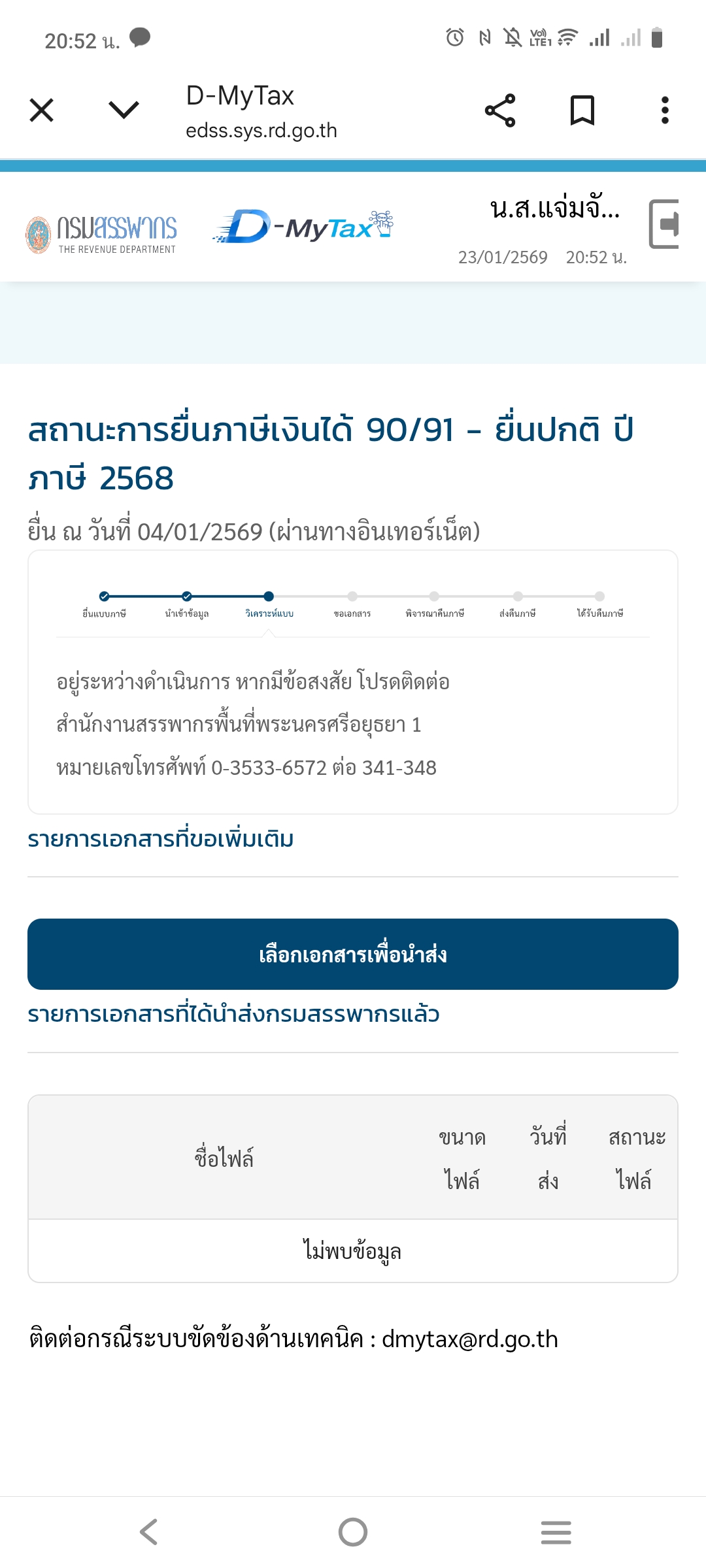ยืนภาษีไปเมื่อ 14 มค 69 ด้วยข้อมูลที่ขึ้นการลดหย่อนภาษีที่ขึ้นในระบบ วันนี้ 23 มค 69 ยังคงขึอนสถานะ วิเคราะห์แบบ อยากทราบว่าใช้เวลาในการดำเนินคืนภาษีนานไหมครับ ปีที่แล้วยื่นถ้าจำไม่ผิดได้คืนไม่เกิน 1