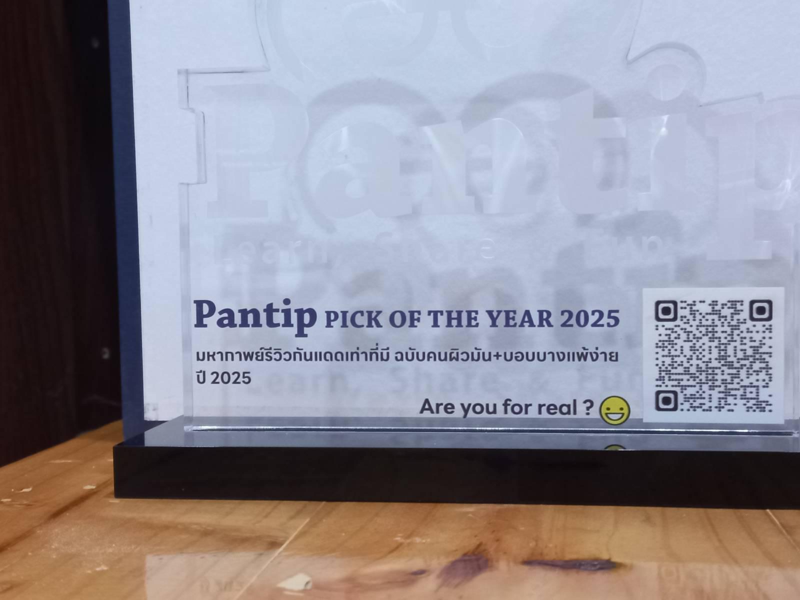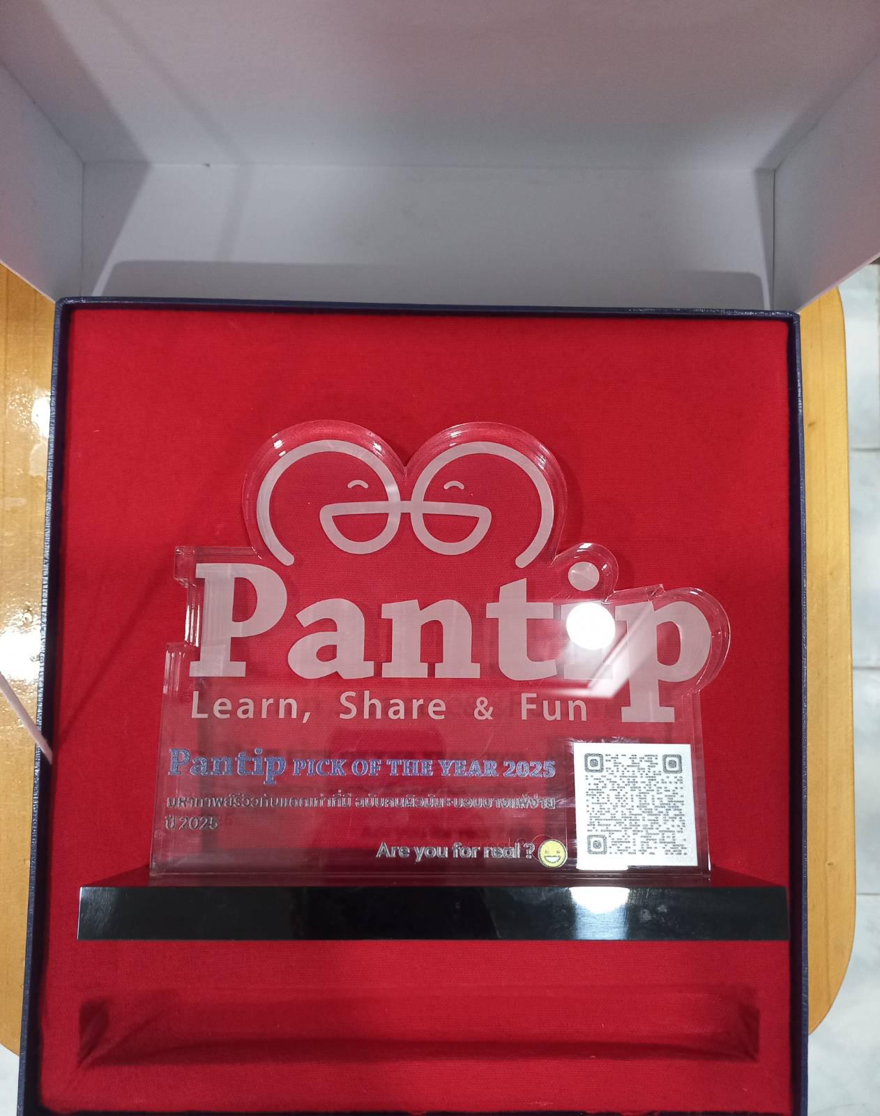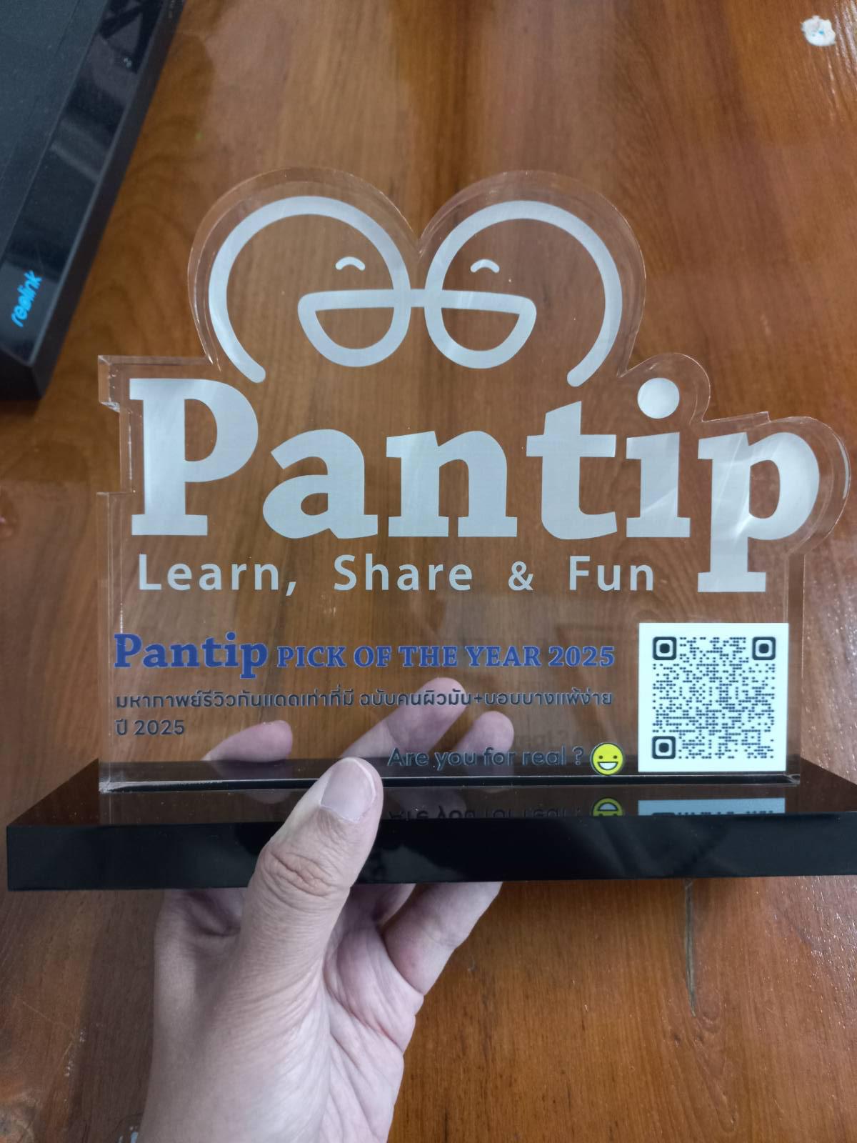 พอแกะออกก็พบว่ามันคือโล่รางวัล Pantip Pick of the Year 2025 และมีชื่อกระทู้ของเราเองสลักอยู่บนนั้น พร้อมชื่อล็อคอิน