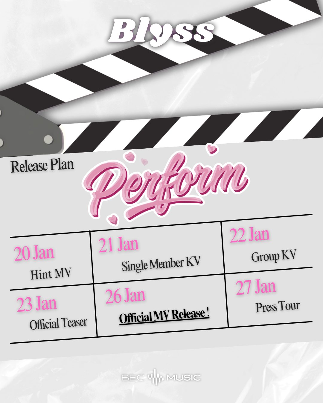 เตรียมรับความสดใสไม่ไหว กับการคัมแบ็กของ 3 สาววง Blyss จากค่าย BEC Music นำทีมโดย ลิซ่า อลิซา, แคนดี้ สุภาภัสสร์ และน้องเล็ก นีญ่า มากีลา กลับมาพร้อมซิงเกิลที่คนแอบรักต้องกดรีเพลย์รัว ๆ "Perform (การแสดง)" เพลงป๊อปฟังง่ายที่ถ่ายทอดอีกหนึ่งก้าวสำคัญของการเติบโตทั้งด้านดนตรีและตัวตนของทั้งสามสาว ผ่านลุคที่ละมุน อบอุ่น และมีมิติมากขึ้น แต่ยังคงความสดใสและเอกลักษณ์เฉพาะตัวไว้อย่างครบถ้วน