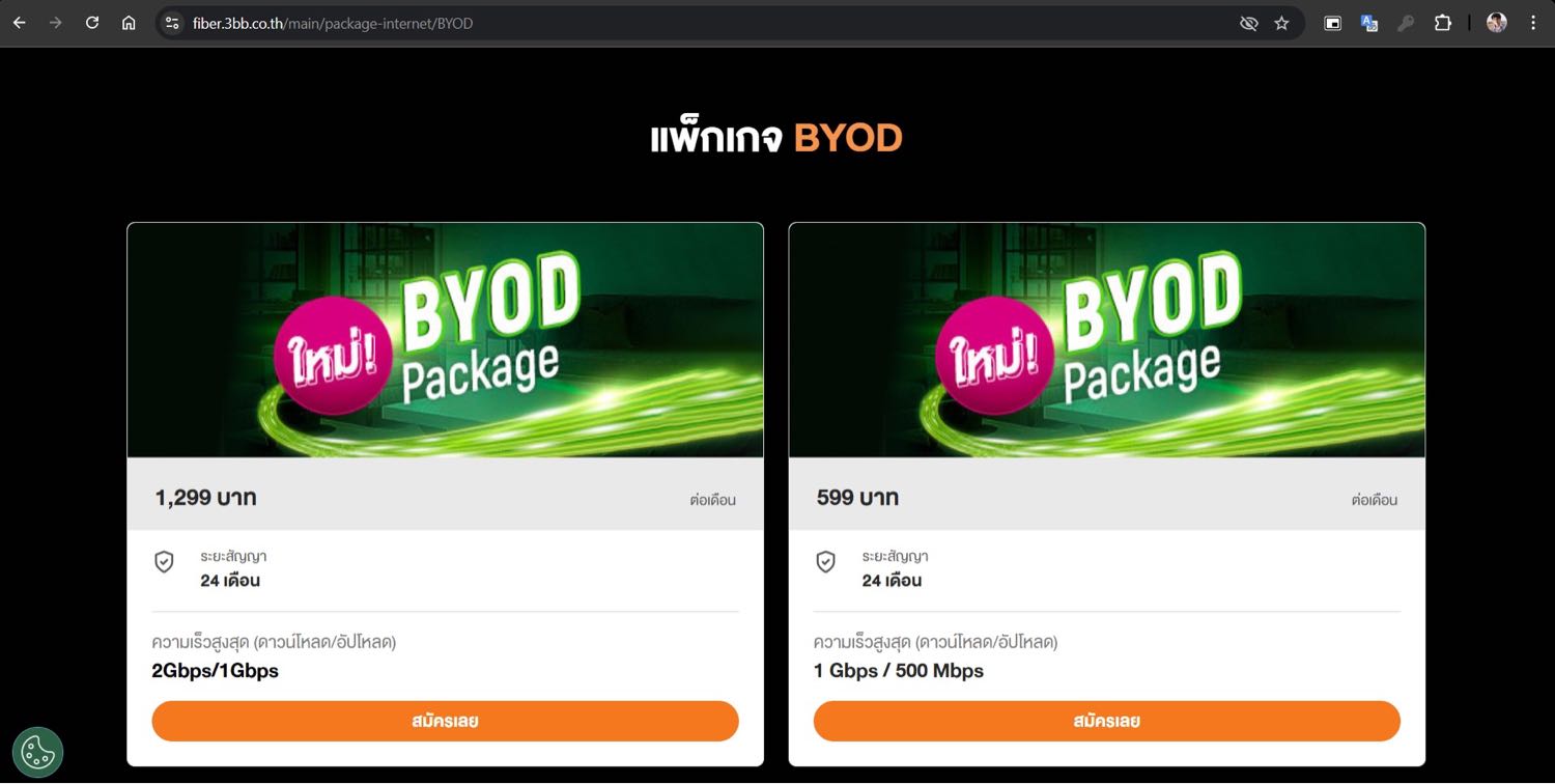 ผิดเงื่อนไขสัญญาของ 3 BB" ของแพ็กเกจ BYOD (599 บาท/เดือน) ตามที่ระบุไว้ในหน้าเว็บไซต์ของบริษัท ซึ่งทำให้ผมไม่สามารถใช้งานอินเทอร์เน็ตได้ตามวัตถุประสงค์มาตั้งแต่วันเริ่มติดตั้ง