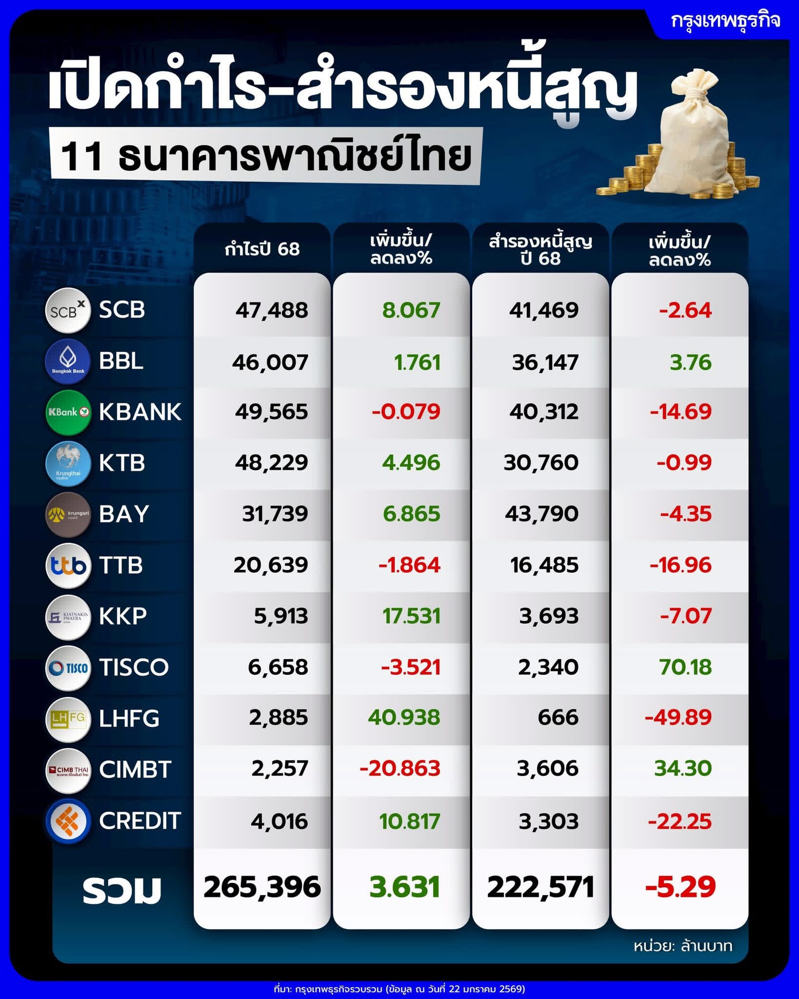 ทั้งนี้ สำหรับกำไรสุทธิไตรมาส 4/68 ที่ 1.0 หมื่นล้านบาท เพิ่มขึ้น 2% จากช่วงเดียวกัน ตาม credit cost ที่ลดลง แต่ลดลง 21% จากไตรมาสก่อนหน้า ตามกำไรจากเงินลงทุนลดลงและค่าใช้จ่ายดาเนินงานปรับสูงขึ้น ซึ่งดีกว่าที่คาด 7% แต่ต่ำกว่าตลาดคาด 5% ขณะที่แนวโน้มกำไรสุทธิไตรมาส 1/69 จะลดลงจากช่วงเดียวกันและทรงตัวจากไตรมาสก่อน กดดันจาก NIM และกำไรจากการขายเงินลงทุนลดลง