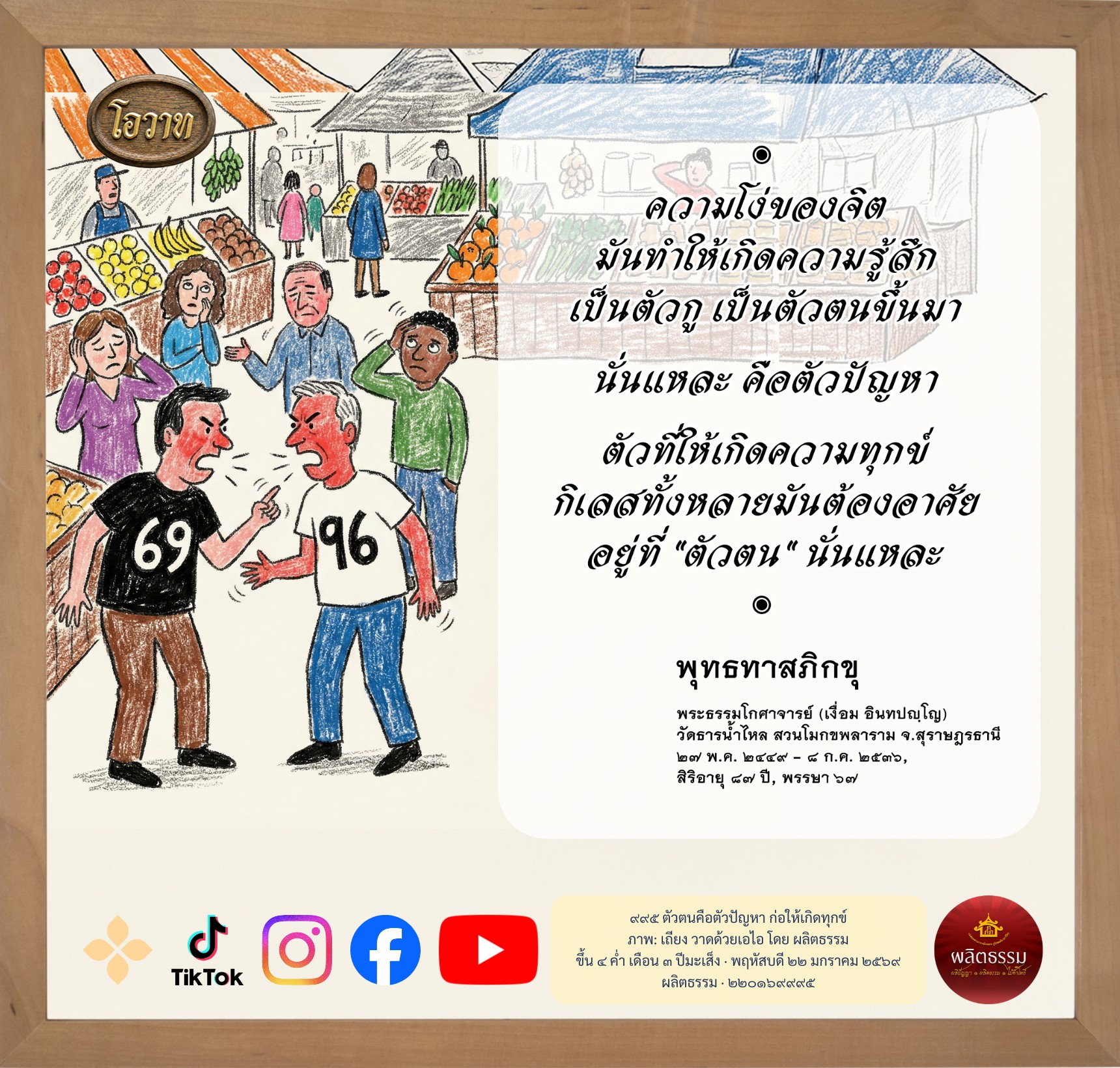 ความโง่ของจิตทําให้คิดว่าเป็นตัวกูของกูขึ้นมานี่ละปัญหา ตัวที่ทําให้เกิดทุกข์ กิเลสทั้งหลายมันต้องอาศัยที่ตัวตน