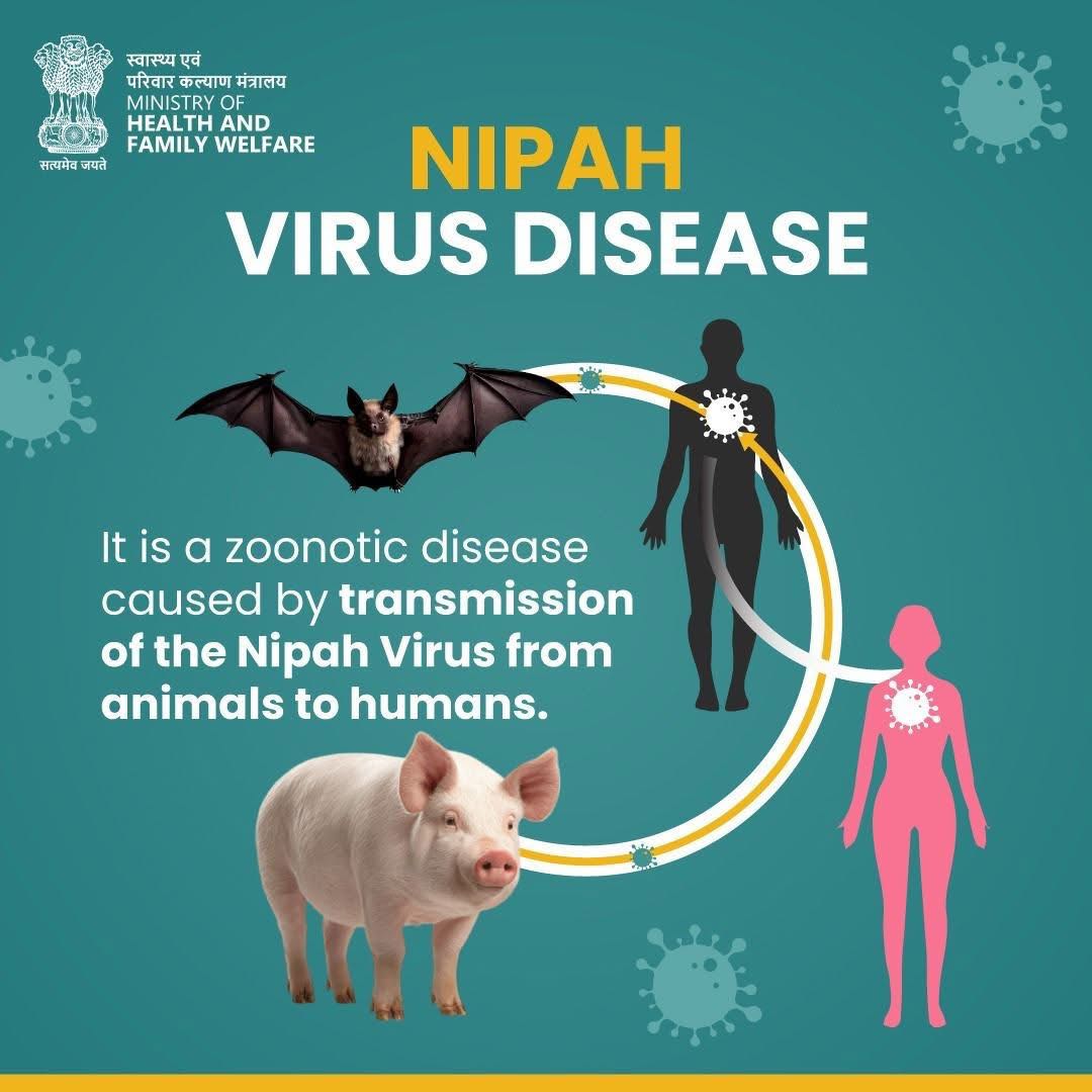 นายราจีฟ จายาเดวัน อดีตประธานสมาคมแพทย์อินเดียประจำเมืองโคชิน กล่าวว่า เนื่องจากพบไวรัสในค้างคาวบางสายพันธุ์ การติดเชื้อในมนุษย์จึงเกิดขึ้นได้ยาก และเกิดจากการแพร่กระจายโดยบังเอิญจากการสัมผัสระหว่างมนุษย์กับค้างคาว ซึ่งหมายถึงการบริโภคผลไม้ที่อาจปนเปื้อนเชื้อจากค้างคาว