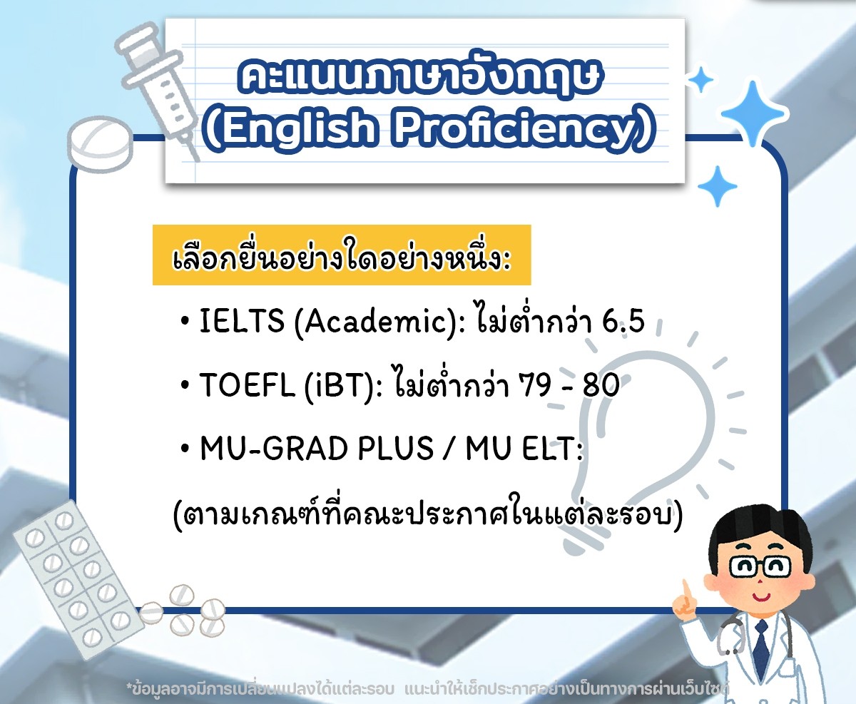 2. คะแนนภาษาอังกฤษ (English Proficiency) ต้องปัง! 🇬🇧 เลือกยื่นอย่างใดอย่างหนึ่งตามเกณฑ์คณะ: