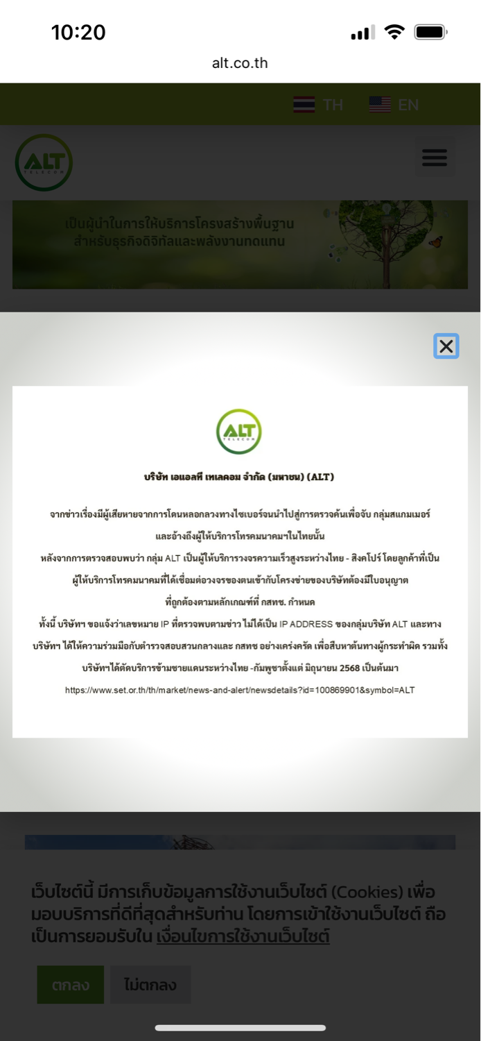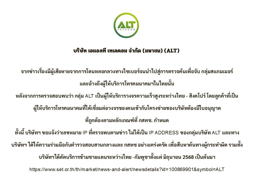ชี้แจง ขอชี้แจงข้อเท็จจริงกรณีข่าวผู้ให้บริการอินเตอร์เน็ตแก่แก๊งคอลเซ็นเตอร์