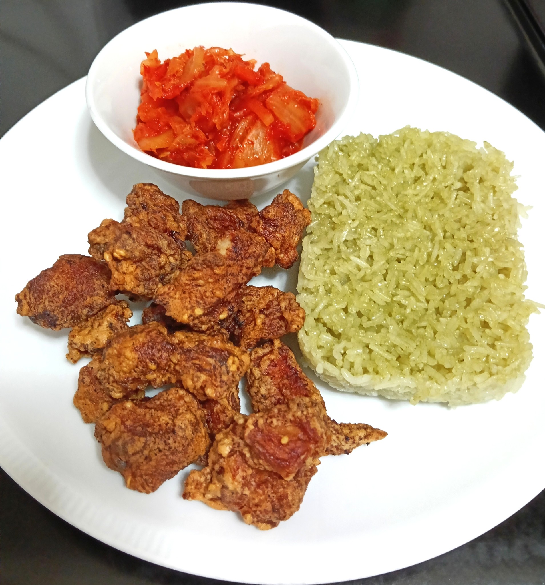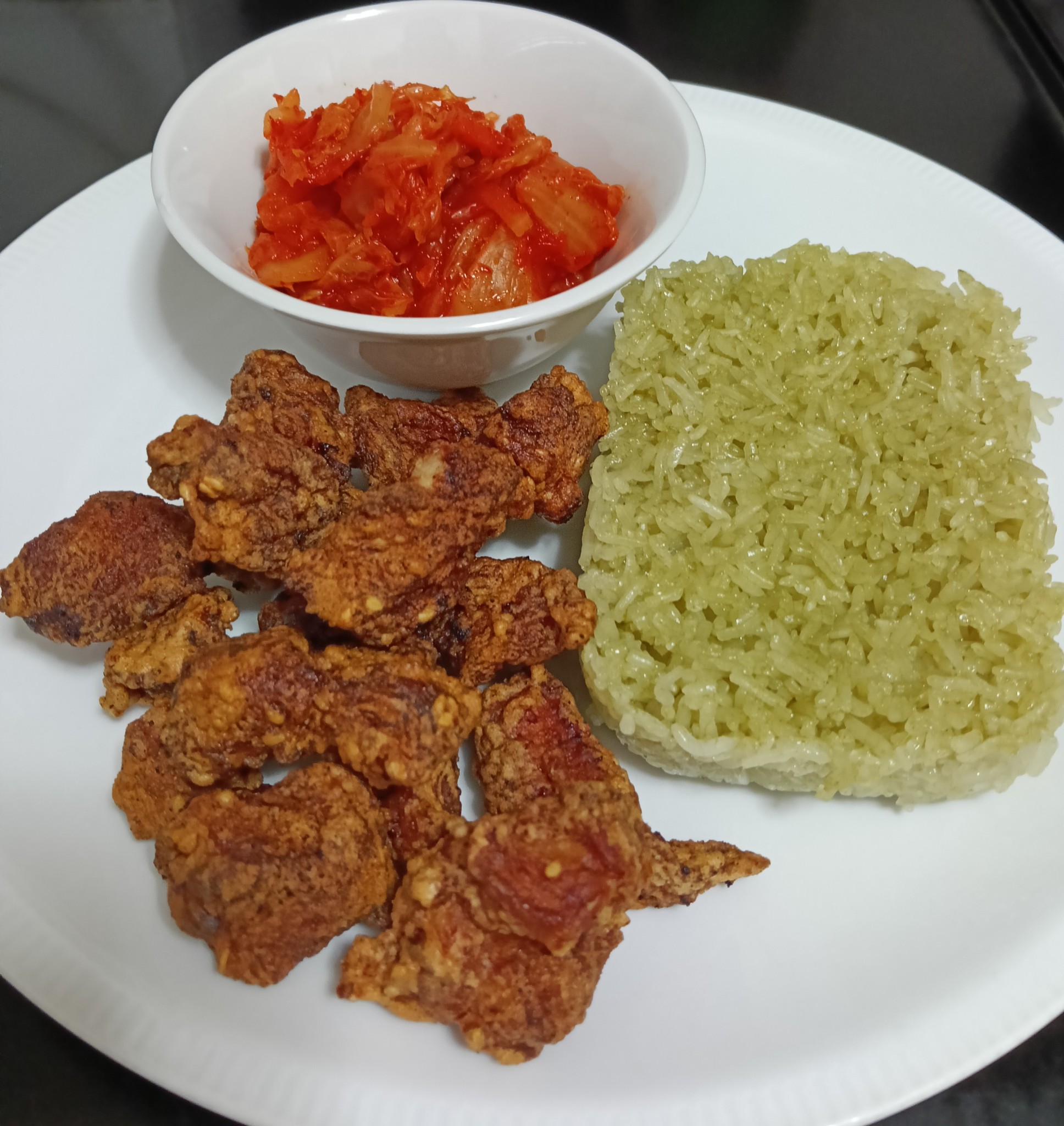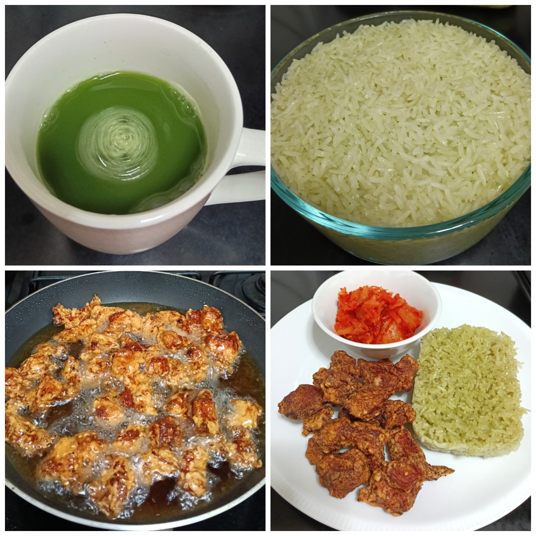 เมนูวันหยุด เขียวๆนี้ไม่ใช่ข้าวเหนียวใบเตยนะจ้ะ แต่เป็นข้าวเหนียว...? &ไก่ทอดงา & กิมจิ #อาหารไทยในต่างแดน 🐔🍚🥬🌶️🌶️