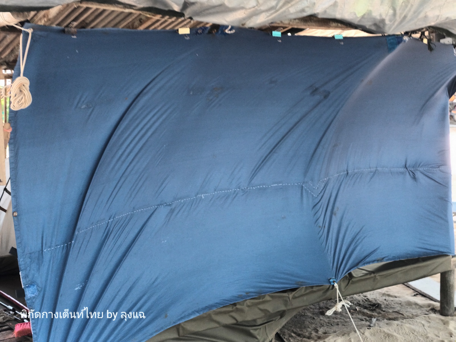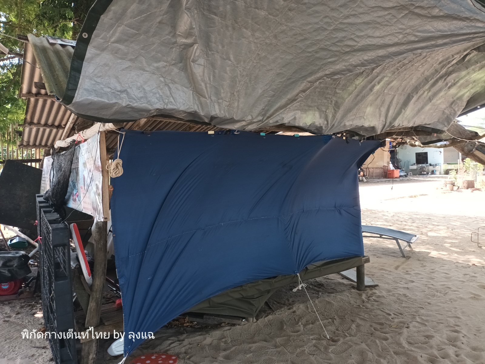 ลมยังพัดแรง เอาทาร์ปที่ปิดด้านหน้าไม่ได้เลย บังลมได้เกือบร้อย ต้องเปิดพัดลมเบาๆ อิอิ แต่อากาศสบายๆ อยู่นะครับ