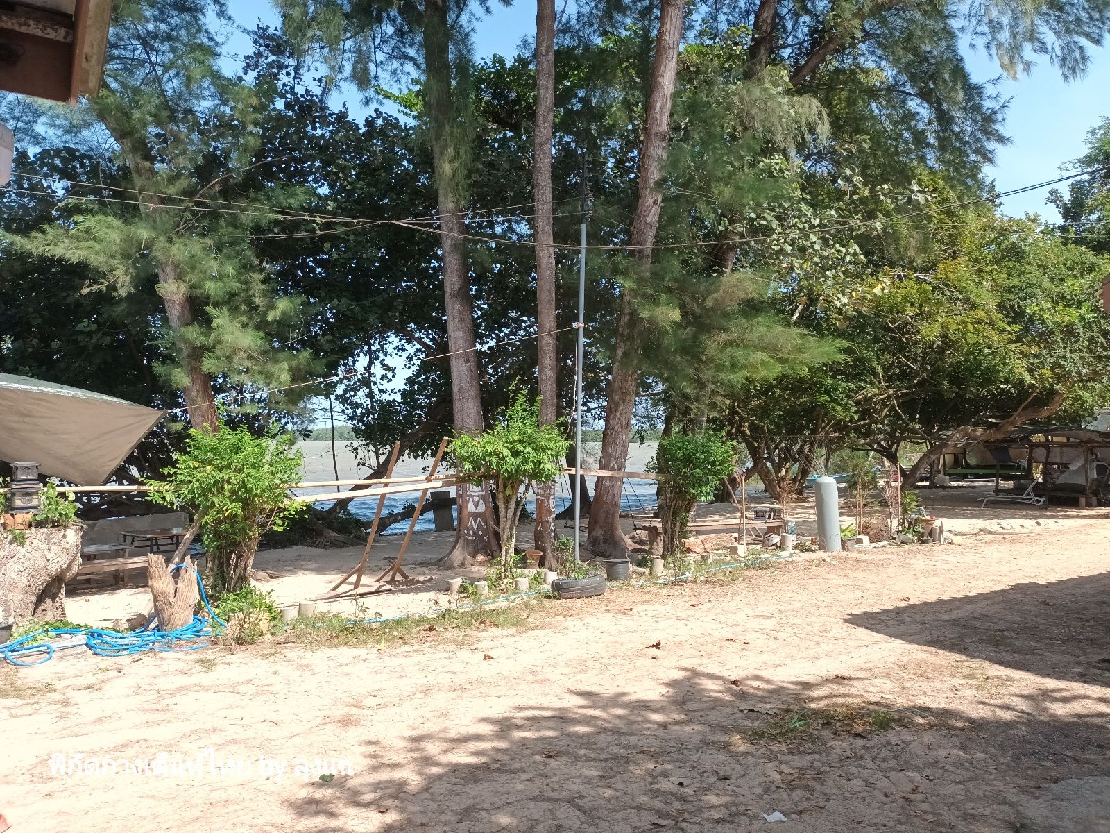 แดดกำลังมา แต่ลานมีร่มไม้ จอดรถแล้วเจ้าของลานเข้ามาต้อนรับ ผมโทรมาเมื่อเช้าแล้ว เพราะเปลี่ยนมาเร็วขึ้น เนื่องจากลานเป้าหมายเดิมริมทะเล คลื่นลมแรง ผู้ดูแลหาดจึงไม่ให้กาง