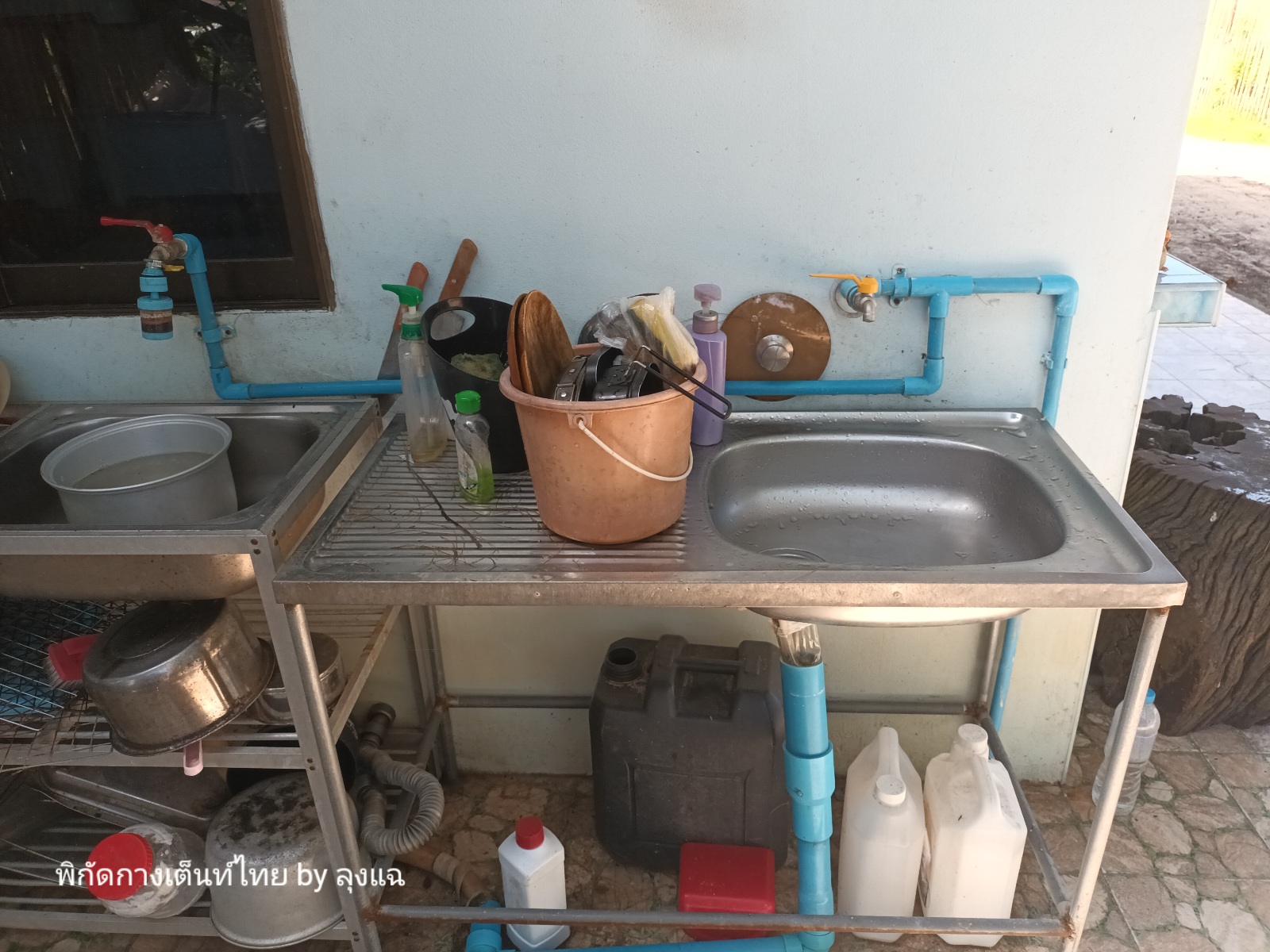 เตรียมมื้อเที่ยงต่อ ใช้เวลาครึ่งชม.ก็เรียบร้อย เปิดทาร์ปออกเพื่อชมวิวด้วย อิ่ม อร่อยครับ แล้วยกไปล้างจานชาม ที่ล้างจานชามมาตรฐานทั่วไปครับ