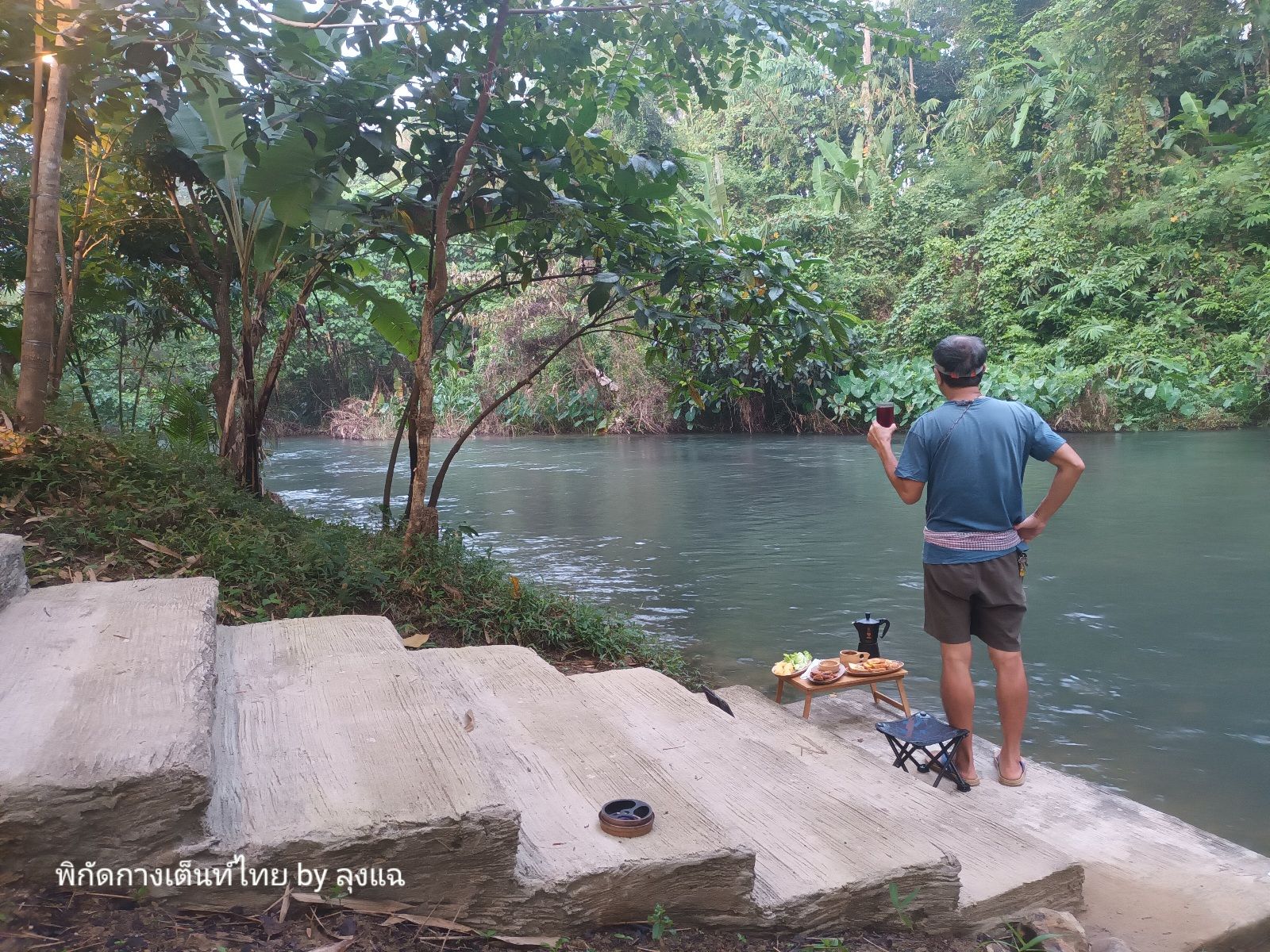 บรรยากาศดี จึงยกกับข้าวไปนั่งทำทรงเชิงบันไดขั้นสุดท้ายติดลำธาร มันฟินมากๆ เลย กับข้าวธรรมดา แต่วิวห้องน้ำสุดยอด อิ่มกาย อิ่มใจเลยครับ