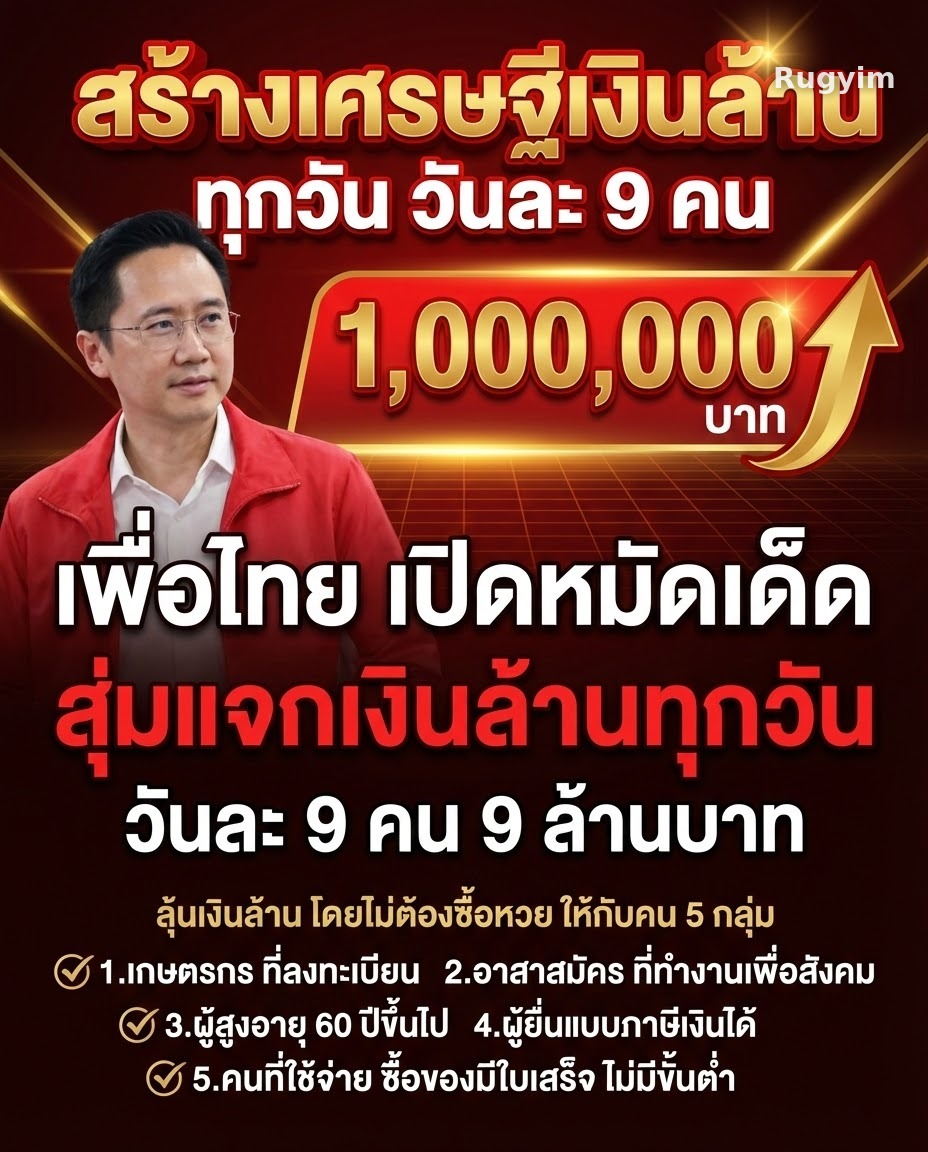 นโยบาย แจกเงินล้านวันละ 9 คน