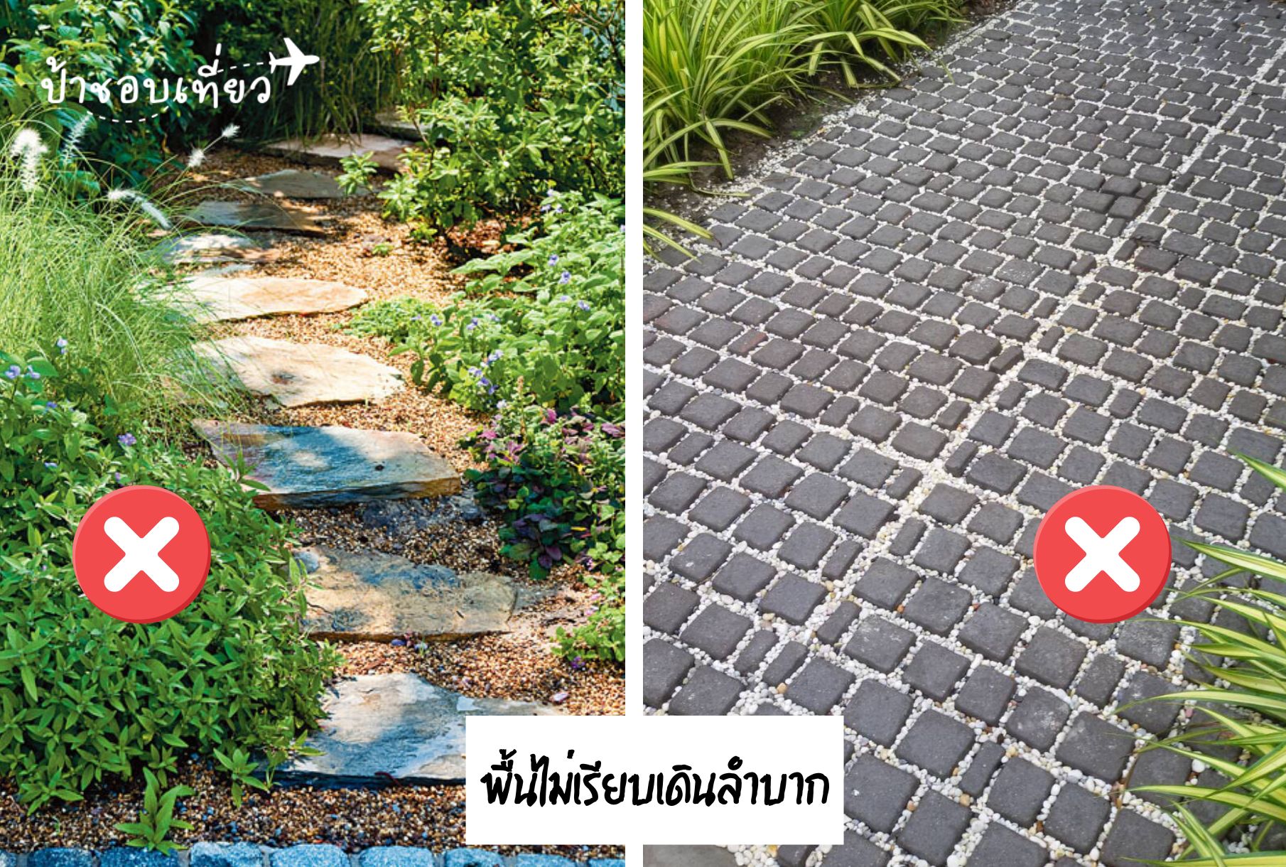 แต่ทางเดินบางทีเรียงอิฐเพื่อความสวยงาม ถ้าพอจะเรียบๆ ก็ไม่เป็นไร