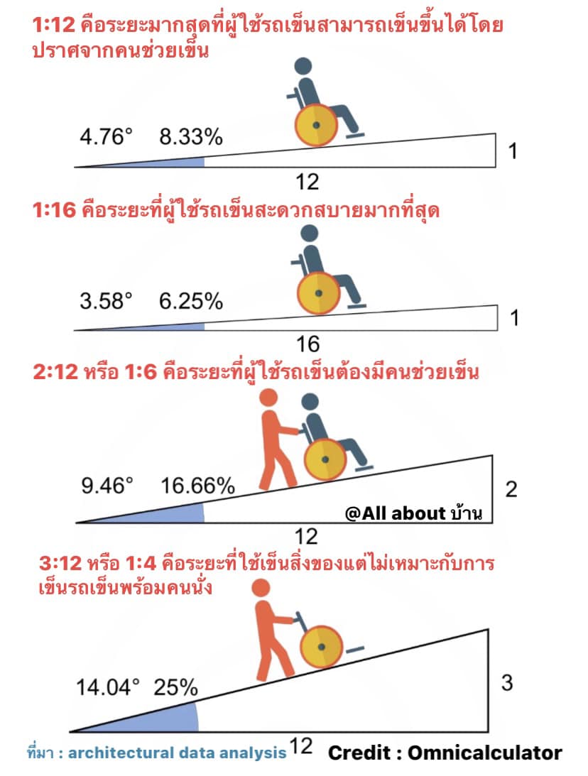 ทางลาดมันก็มีมาตรฐานเหมือนกัน ป้าเอารูปนี้มาจากเว็บ ก็คง Copy กันมาหลายต่อเลยเครดิตเยอะหน่อย