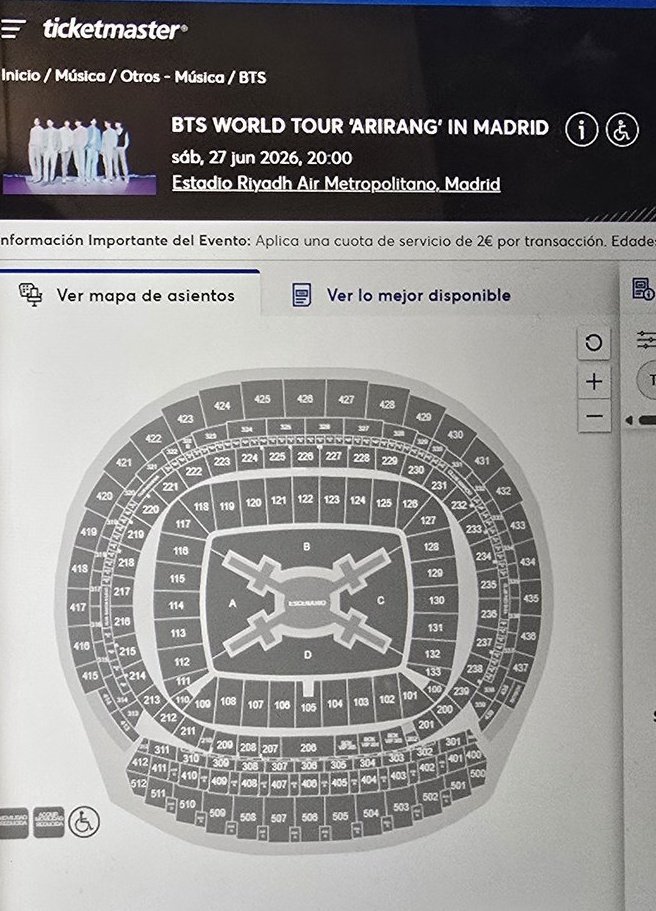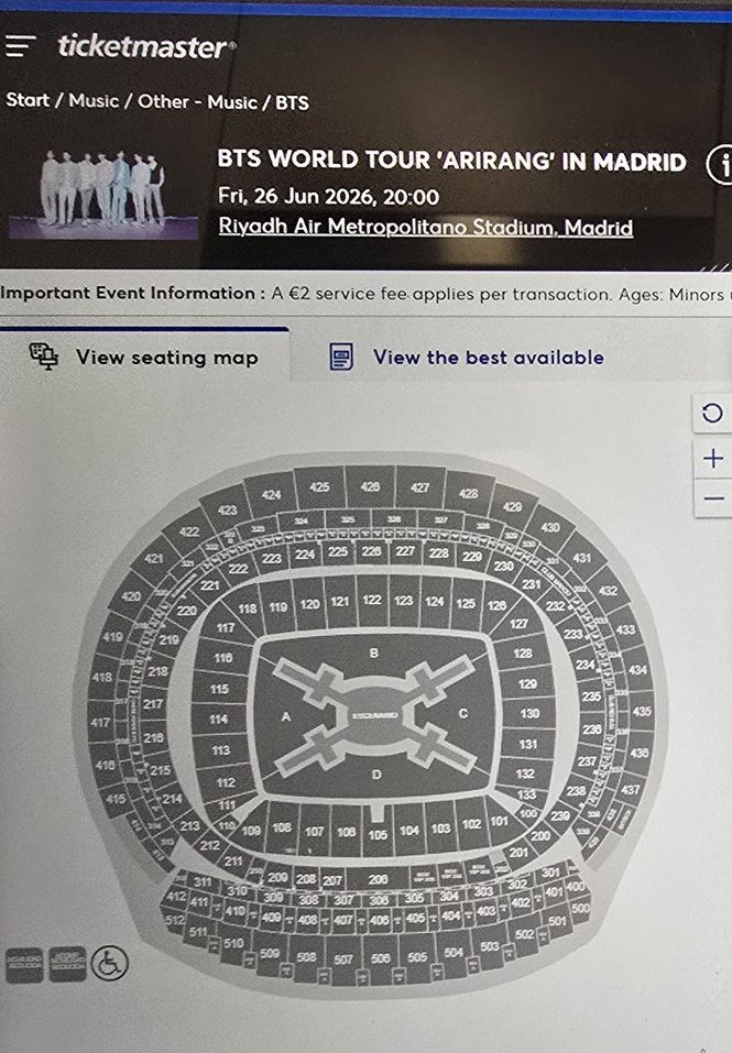 ตั๋วคอนเสิร์ต BTS ในมาดริด (Madrid) ประเทศสเปน ทั้ง 2 วัน (26 และ 27 มิถุนายน 2026)