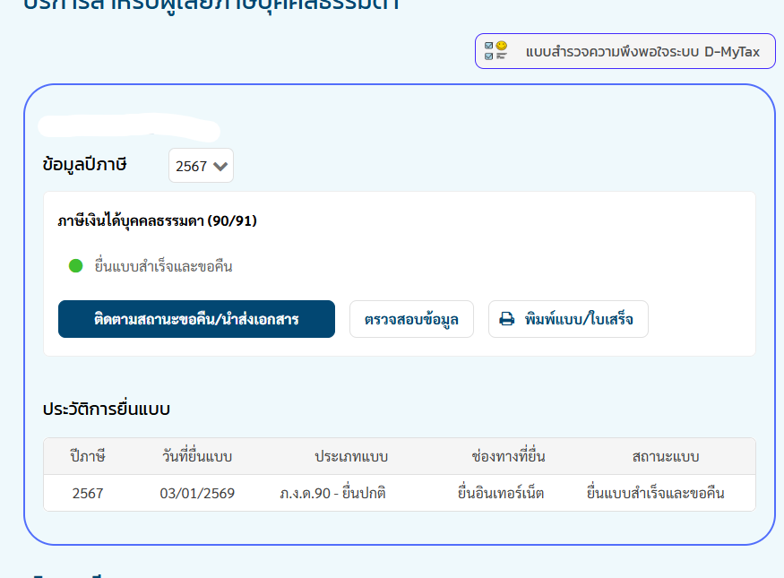 ยื่นภาษีออนไลน์ย้อนหลังออนไลน์ ไม่มีปุ่มให้กดติดตามสถานะ,ส่งเอกสารไม่ได้ ปกติไหมครับ
