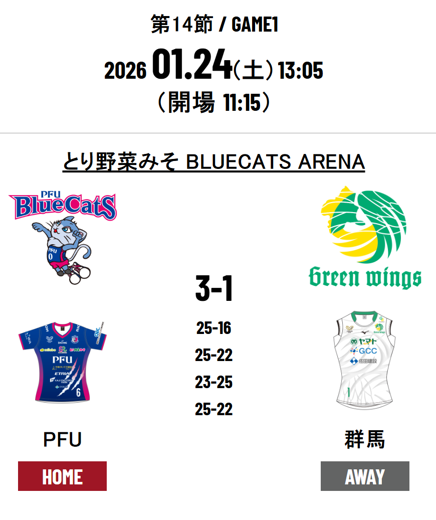 PFU Bluecats Ishikawa Kahoku 3 - 1 Gunma Green Wings