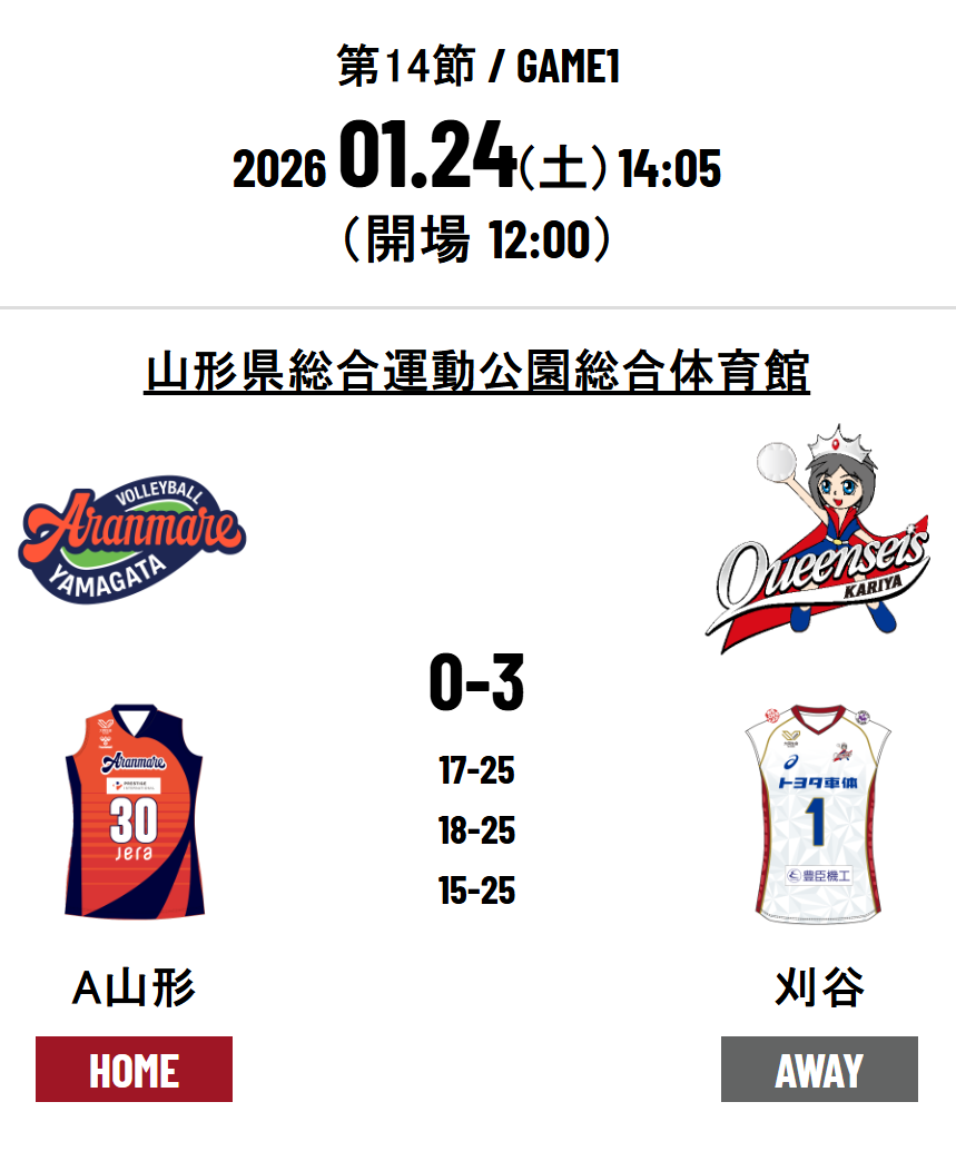 Aranmare Yamagata 0 - 3 Queenseis Kariya