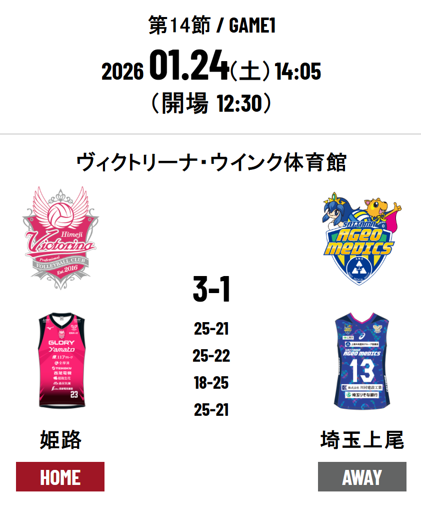 Victorina Himeji 3 - 1 Saitama Ageo Medics