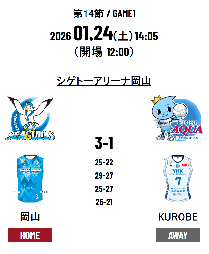 Okayama Seagulls 3 - 1 KUROBE Aqua Fairies