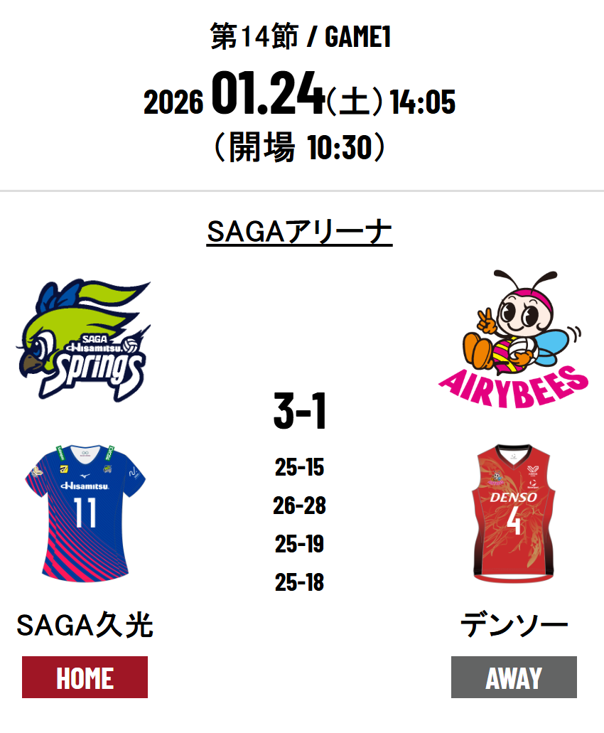 SAGA Hisamitsu Springs 3 - 1 DENSO Airybees