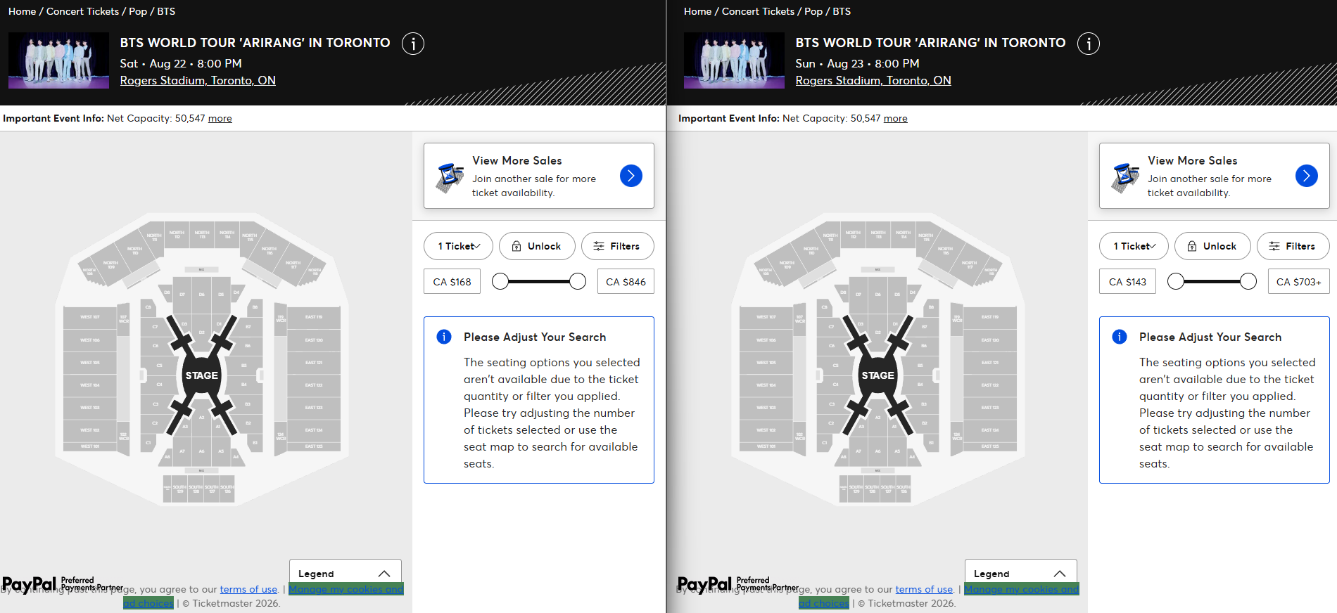 บัตรคอนเสิร์ต BTS 'ARIRANG' ทั้งที่สนาม MetLife, SoFi, Tottenham, Riyadh Stadium รวมถึงที่อื่น ๆ ขายหมดเกลี้ยง (SOLD OUT) เป็นที่เรียบร้อยแล้ว ตั้งแต่รอบ Pre-sale สำหรับสมาชิก ARMY membership เท่านั้น!