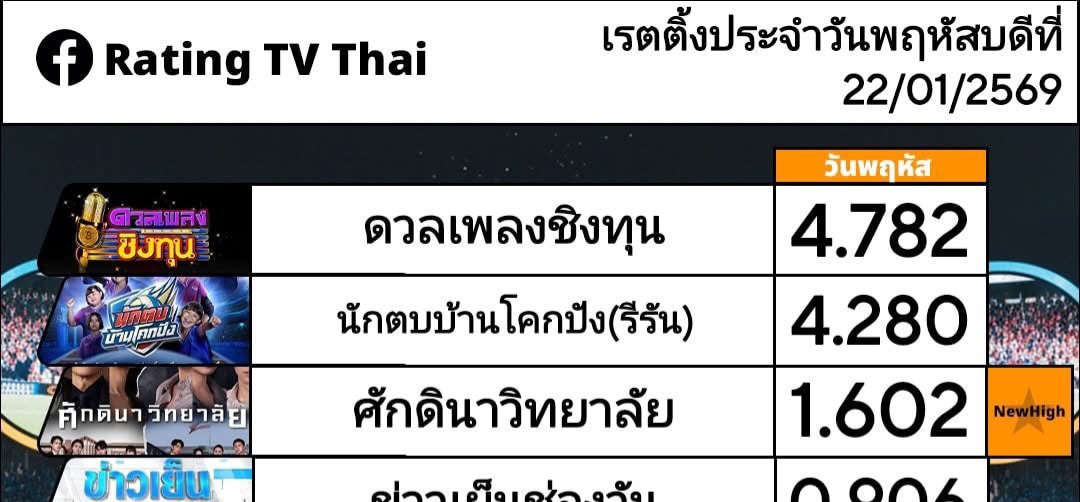 เรตติ้ง one31 พฤ. 24/01/69 เครดิต Rating TV Thai ค่ะ