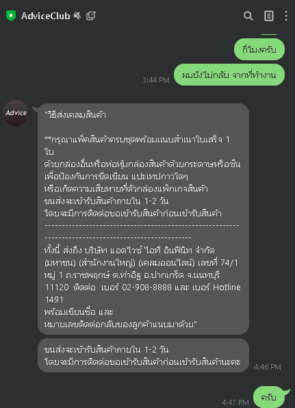 แจ้งขนส่งจะมารับ อีกวันสอง วัน