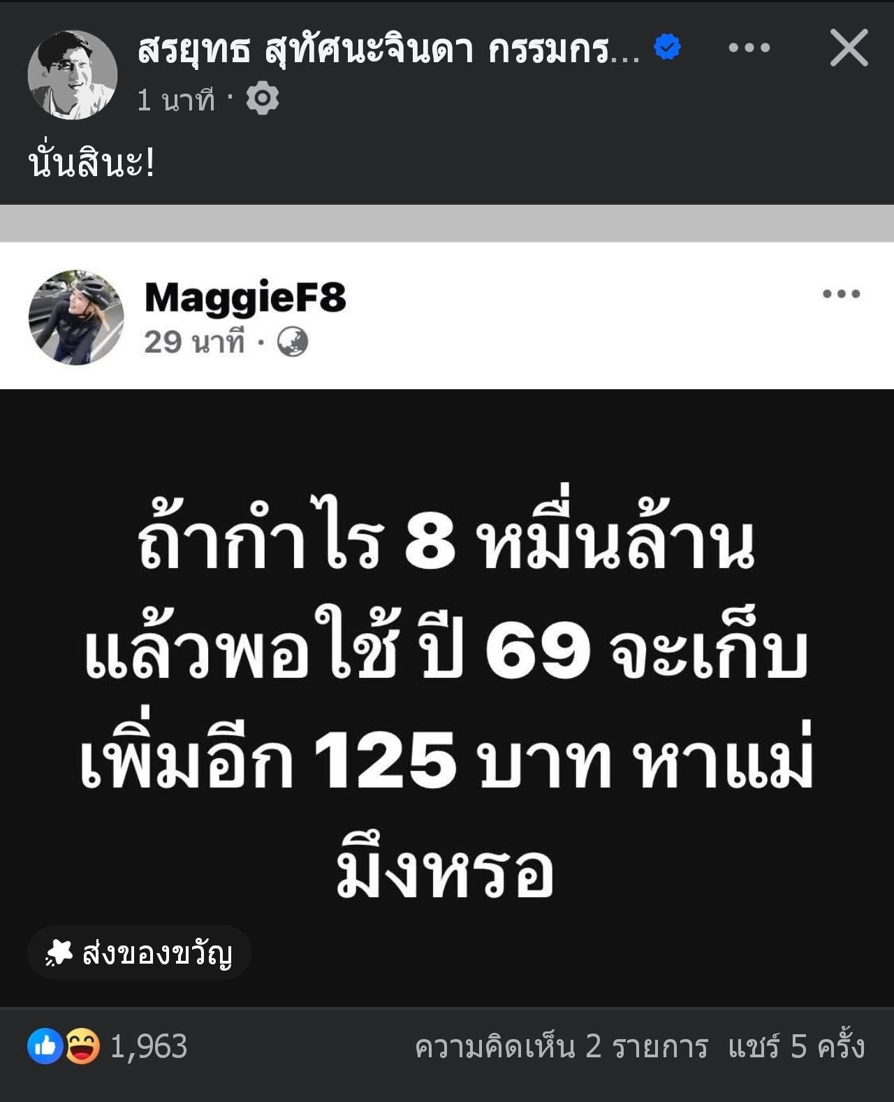 ถ้ากำไร 8 หมื่นล้านแล้วปี 69 เก็บเงินอีก 125 บาท เพื่อ ....