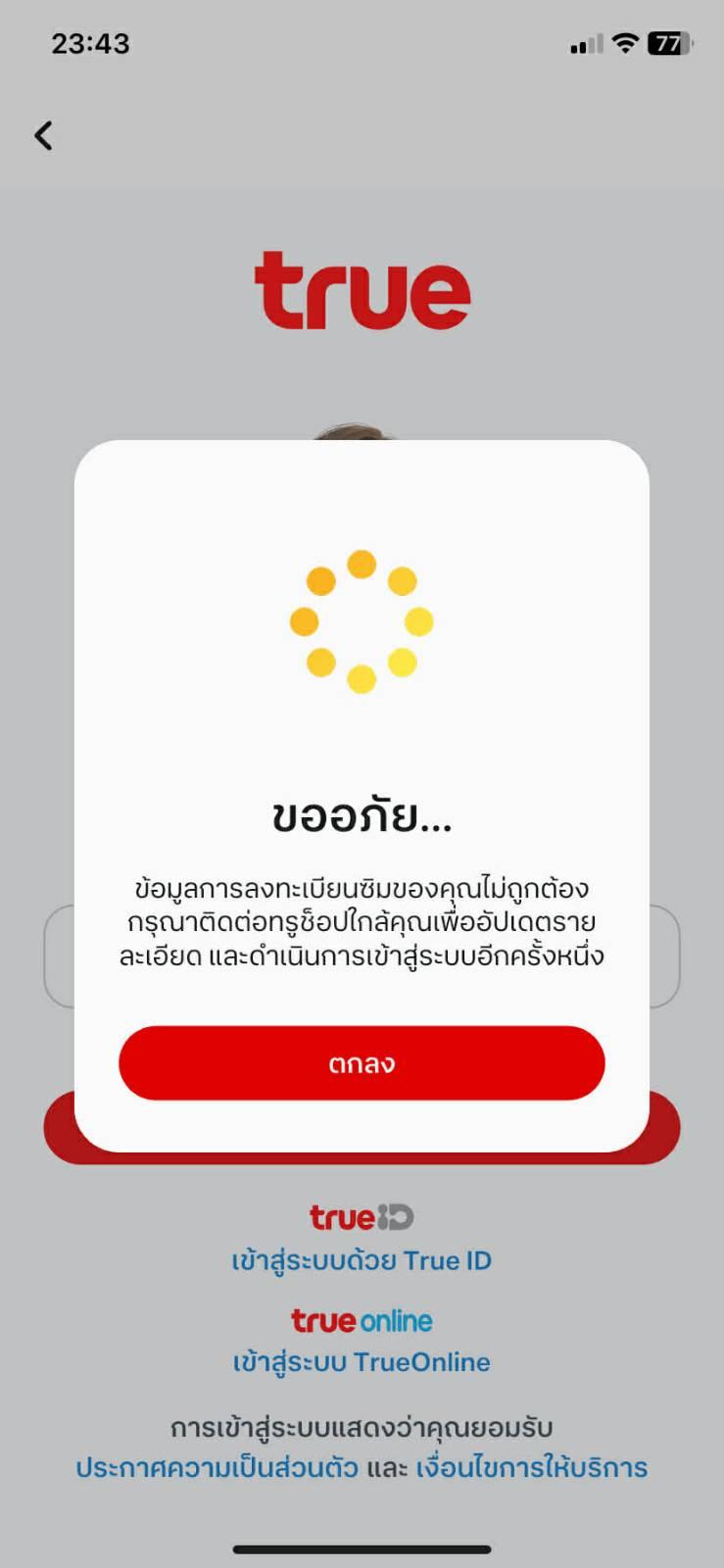ปัญหา คือ ออกจากระบบไลน์ ถอดซิมไปไว้อีกเครื่องนึง พอย้ายซิมกลับมา จะเข้าไลน์เดิมแต่smsไม่ส่งข้อความมา แต่เช็คแล้วโทรเข้าออกได้ปกติ เติมเงินได้ปกติ วันใช้งานไม่หมดอายุ แต่บอกว่าการลงทะเบียนไม่ถูกต้องก็เลยนำบัตรประชาชนไปติดต่อที่ทรูช็อป ทรูช็อปก็ทำอะไรให้ไม่ได้ บอกแค่ว่าไม่เคยเจอปัญหานี้ ไม่มีข้อมูลเราในระบบ ให้เราโทรหา 1412 เอง บอกว่าไม่รู้จะโทรติดมั้ยลูกค้าโทรเองคุยเองเลยค่ะ ถ้าทางนั้นเขาว่าไงค่อยมาที่ทรูช็อปอีกรอบนะคะ ให้เราเดินออกจากช็อปมา เราต้องติดต่อเองทำเอง ถือสายรอเกือบ 10 นาทีก็ไม่มีเจ้าหน้าที่รับสายเลย แต่เบอร์นี้เราใช้งานมาหลายปีแล้วก็งงค่ะ เลยไม่รู้จะทำไงต่อแล้ว เราเลี้ยงซิมเลี้ยงเบอร์มานานก้วย เสียดาย เลขก็สวยไม่อยากให้โดนระงับ มีไลน์กับเบอร์นี้ด้วยค่ะ เลยอยากให้เช็คเบอร์ให้หน่อยค่ะว่าต้องทำอย่างไร