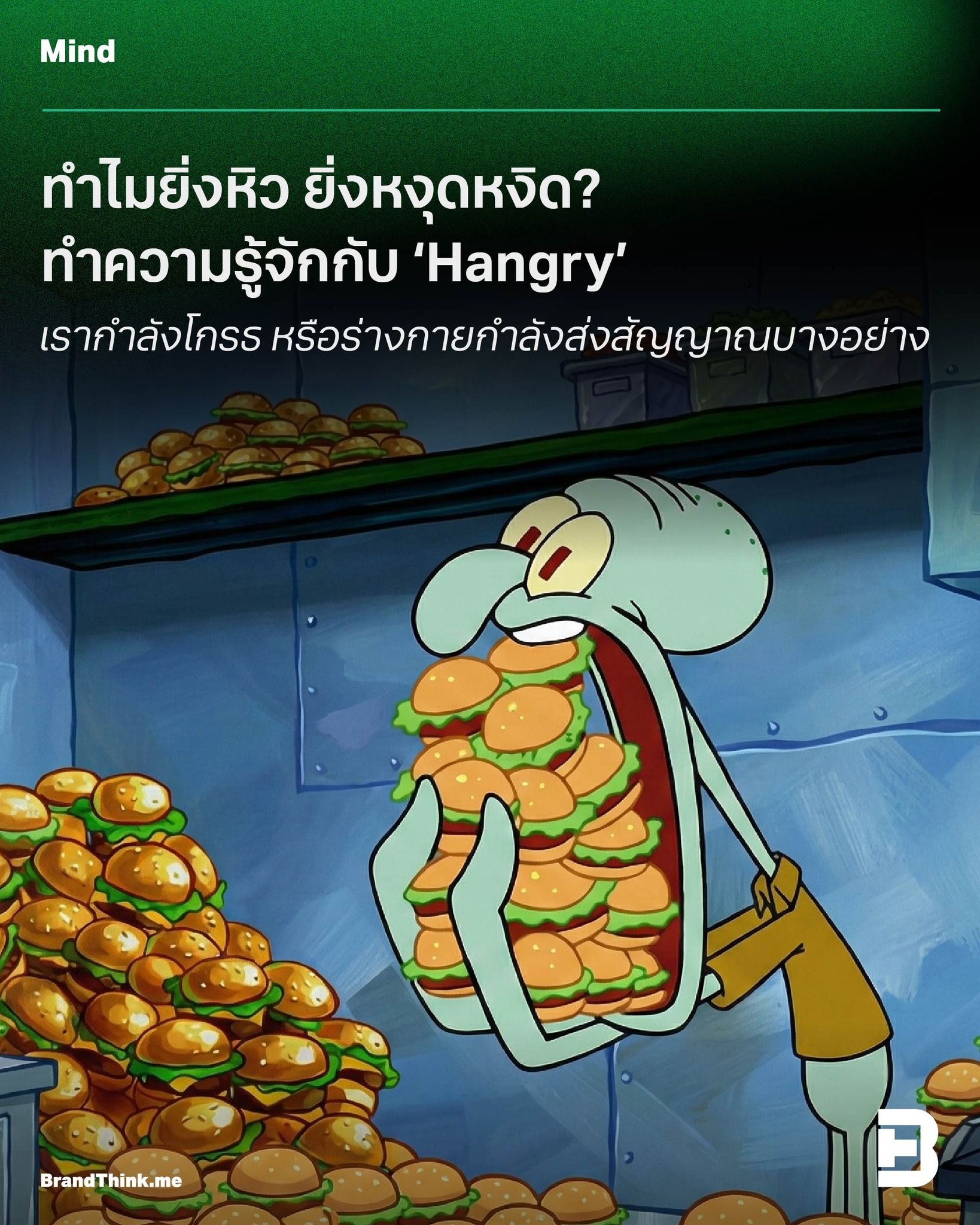 คำว่า ‘hangry’ หรืออาการหงุดหงิดเวลาเราหิว กลายเป็นคำที่ใครๆ ก็เข้าใจ แต่แท้จริงแล้วมันคือสัญญาณเตือนว่าเราเริ่มแยกไม่ออกว่าอะไรคืออารมณ์จริงๆ และอะไรเป็นเพียงปฏิกิริยาของร่างกาย เพราะสิ่งที่เรียกว่า ‘โมโหหิว’ ไม่ได้เกิดจากความโกรธ แต่มันคือการที่สมองสั่งให้เราเข้าสู่โหมดเอาชีวิตรอด