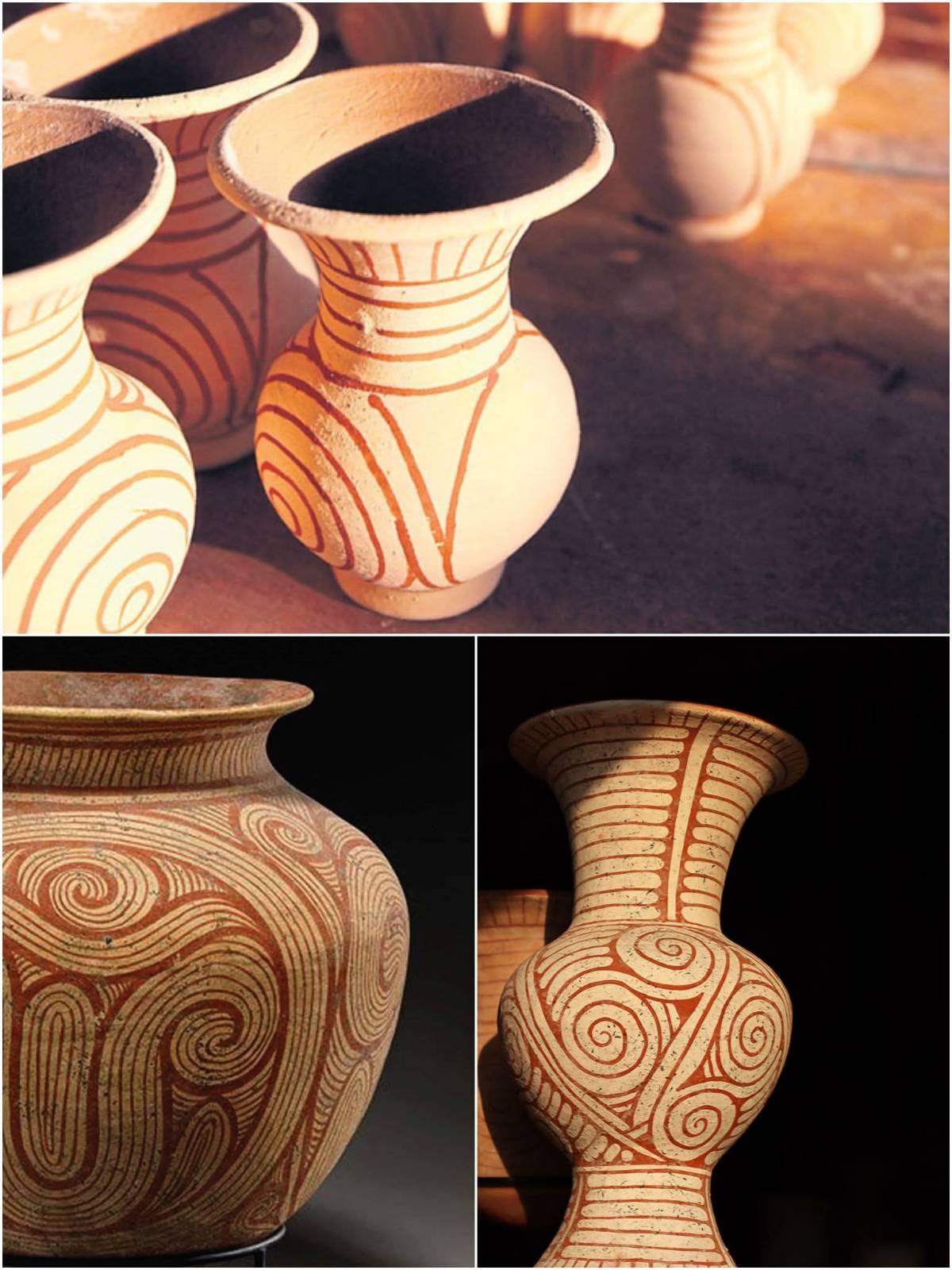 🏺ยุคปลาย 2,300 - 1,800 ปีมาแล้ว ยุคทอง มีการเขียนลายเส้นสีแดง (สีจากแร่เฮมาไทต์) บนพื้นนวล เป็นลายก้นหอยและลายเรขาคณิต