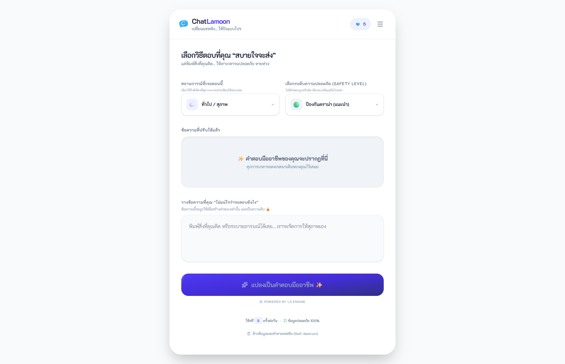 หลักการคือ: พิมพ์สิ่งที่เราคิด (หรือบ่น) ลงไป แล้ว AI จะช่วยเกลาให้เป็นภาษาดอกไม้แบบมืออาชีพทันที