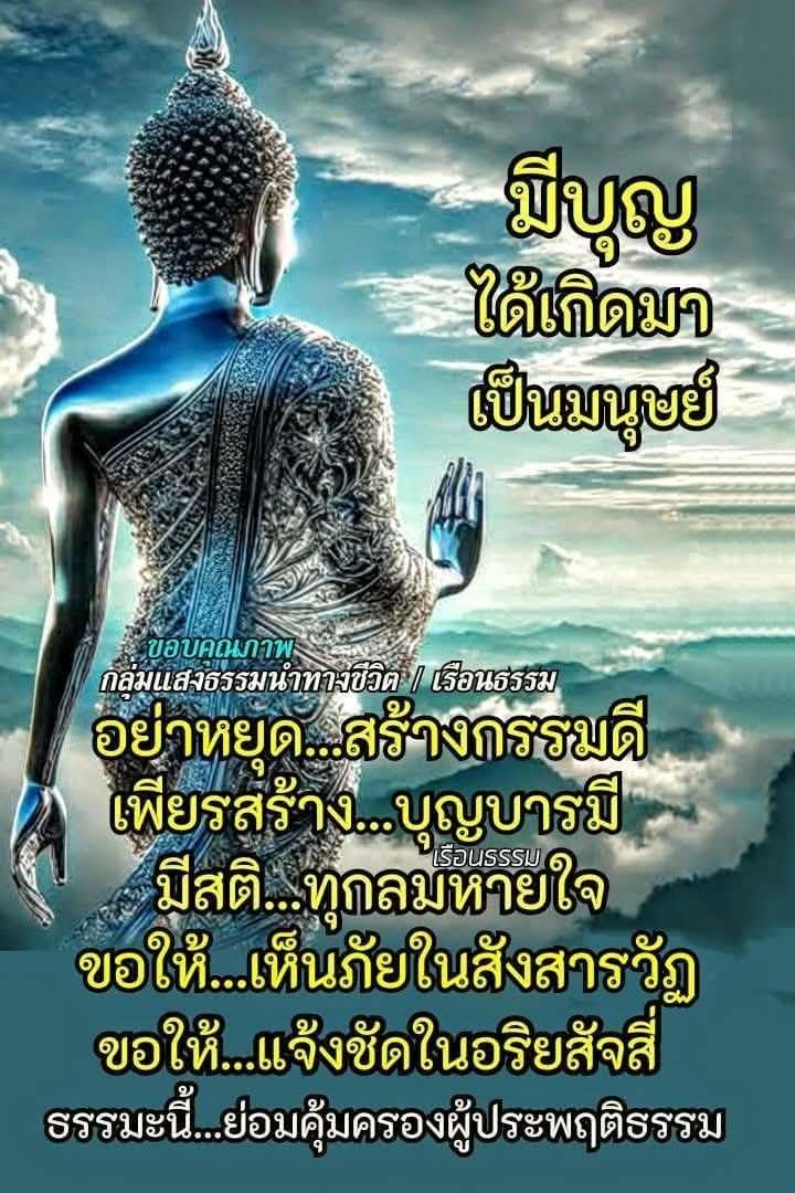 มีบุญได้เกิดมาเป็นมนุษย์อย่าหยุดสร้างกรรมดีสร้างบารมีมีสติเห็นภัยในสังสารวัฎขอให้แจ้งชัดในอริยสัจสี่