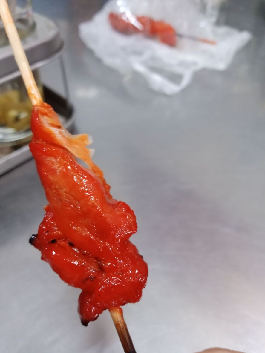 เมื่อผมเจอร้านไก่ย่างแดง 🍗 เหมือนเป็นอัตโนมัติ ในการเดินเข้าไปซื้อ ร้านนี้ ดูน่ากินมาก แดง ชุ่มฉ่ำ และมีหลายอย่างให้เลือกหยิบ เนื้ออกติดมัน ที่แดงได้ใจ ซื้อมา 3 ไม้ กะจะเอาใจคุณภรรยา แต่เธอบ