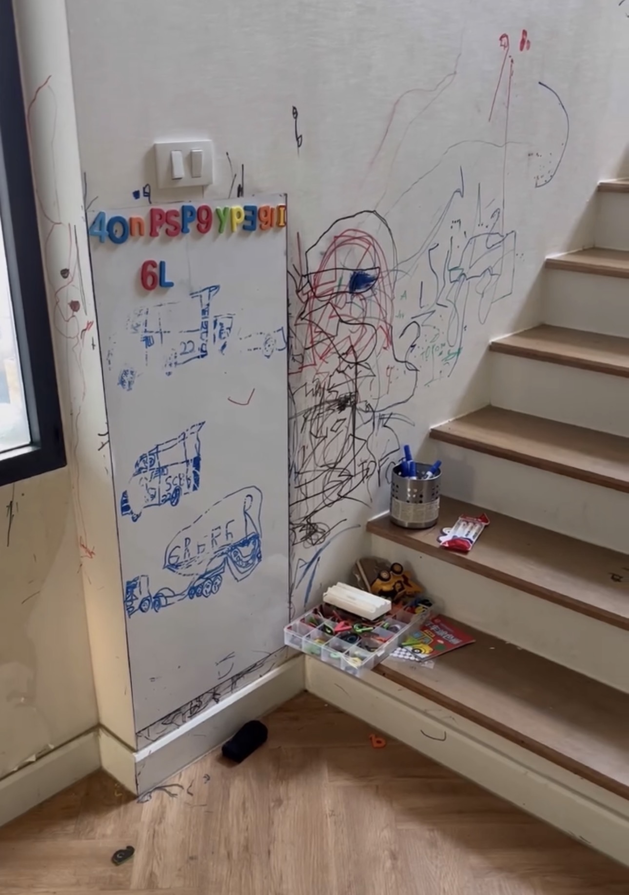 [อวดผนังบ้าน] บ้านคนอื่นติดวอลเปเปอร์ บ้านเราติด…ผลงานศิลปินตัวน้อย 🎨😂