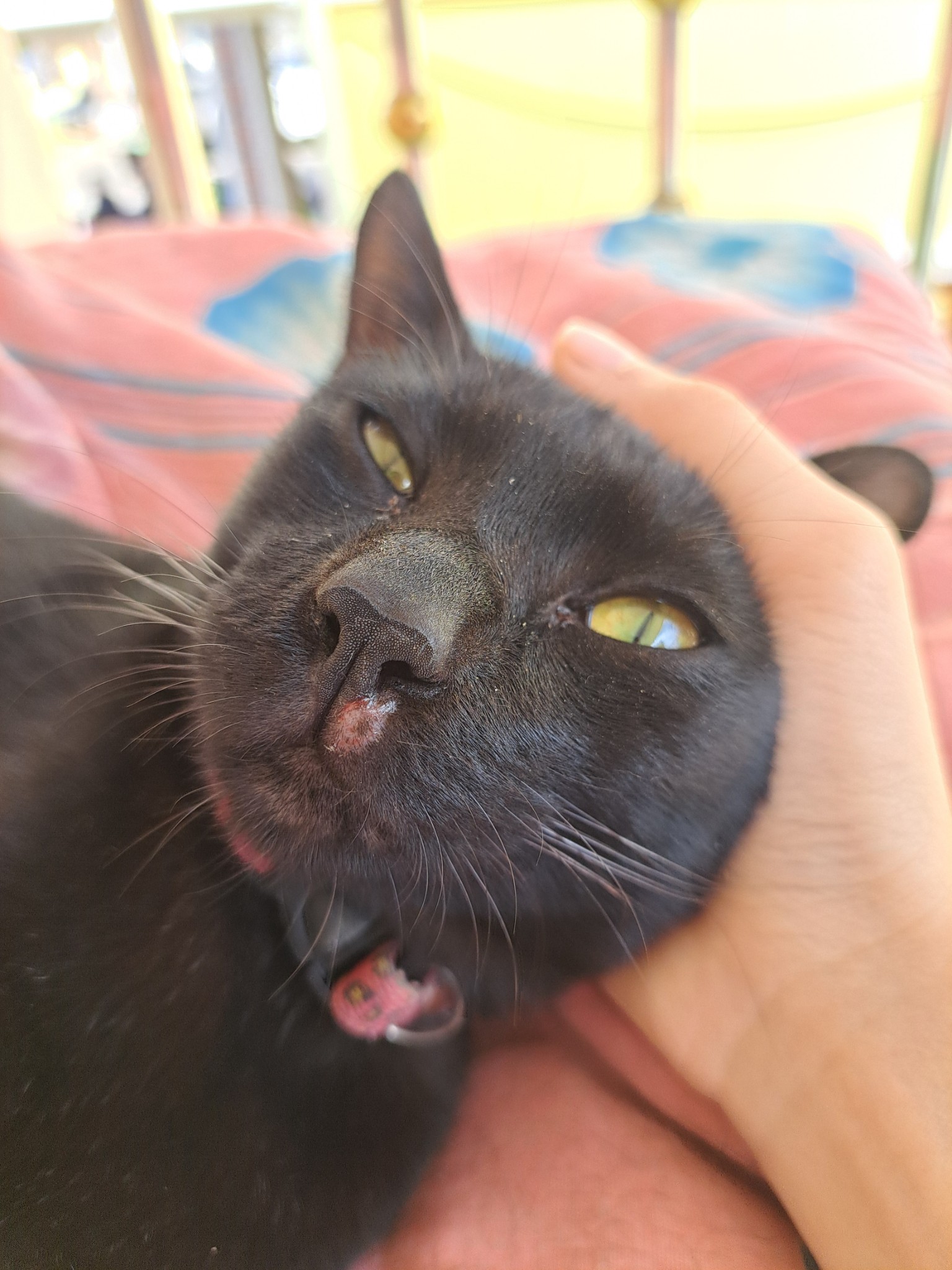 พอดีเห็นจมูกน้องแมวแดงๆ ละพอไปดูใกล้ๆจมูกน้องถลอกแบบนี้อะคะ น้องจะเป็นเด็กเล่นซนอยู่แล้ว ถ้าแค่เป็นแผลถลอกก็ดีไป แต่กลัวเป็นเชื้อราค่ะ