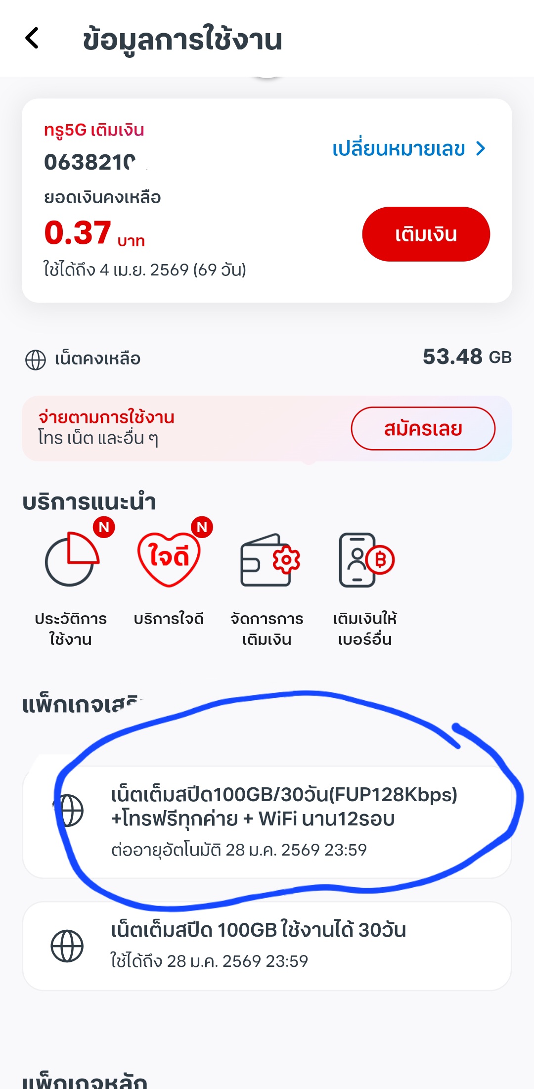 จนท True ช่วยที เบอร์ 063 8210421 มีpackageรายปีโทรฟรีเนตฟรียังไม่หมดอายุ โทรออกไปหักเงินที่เติมไปในซิม จนระบบมีแจ้