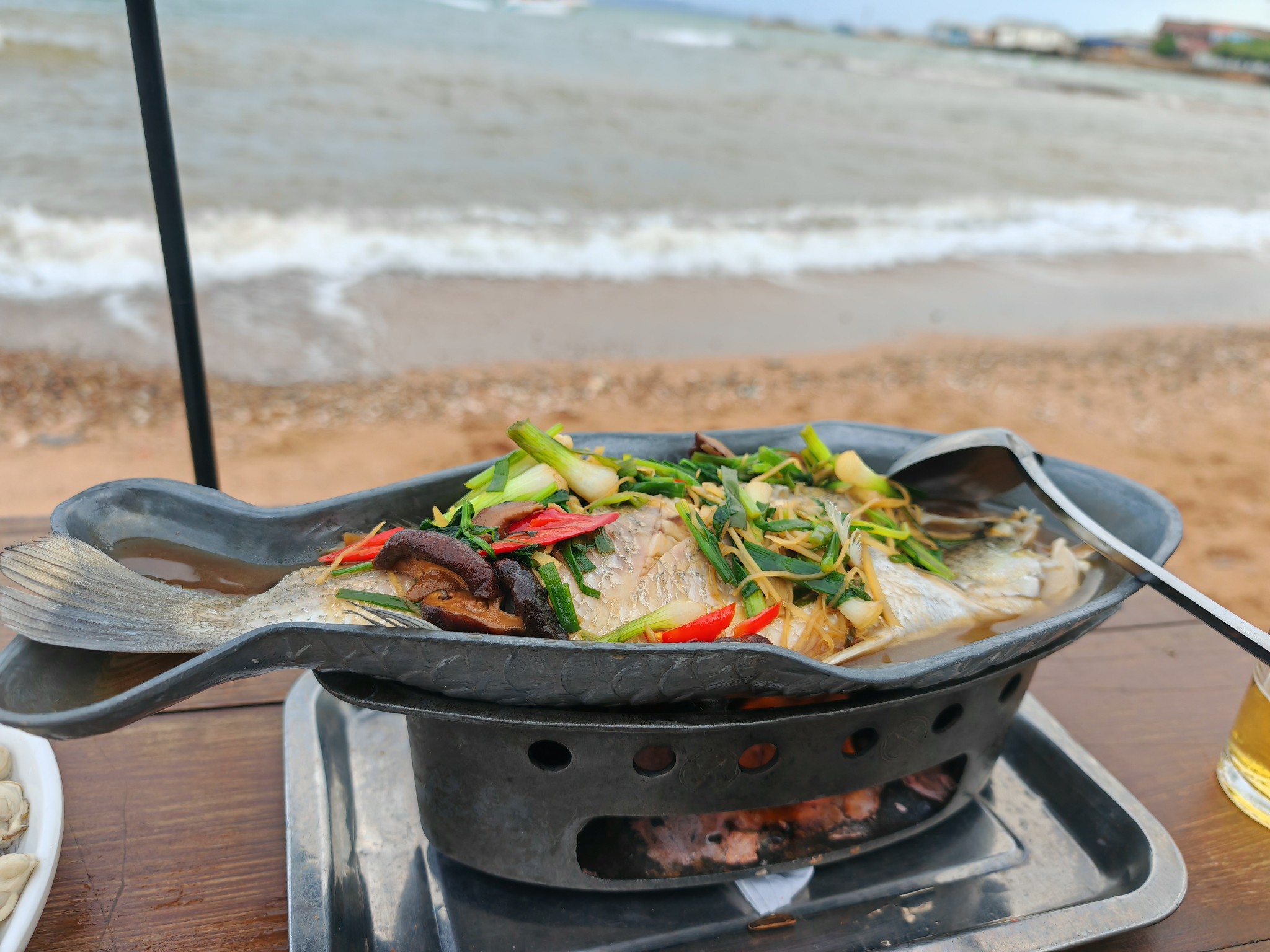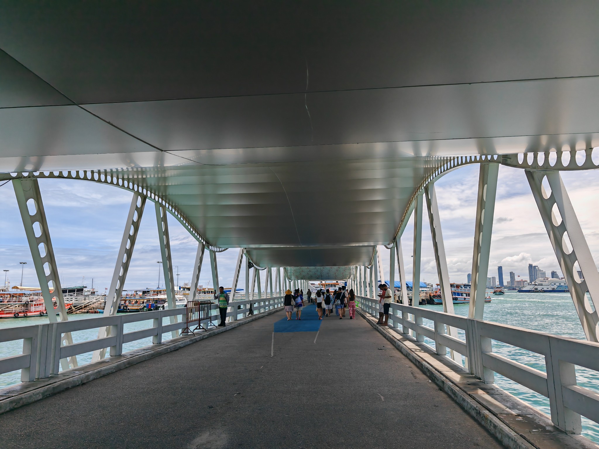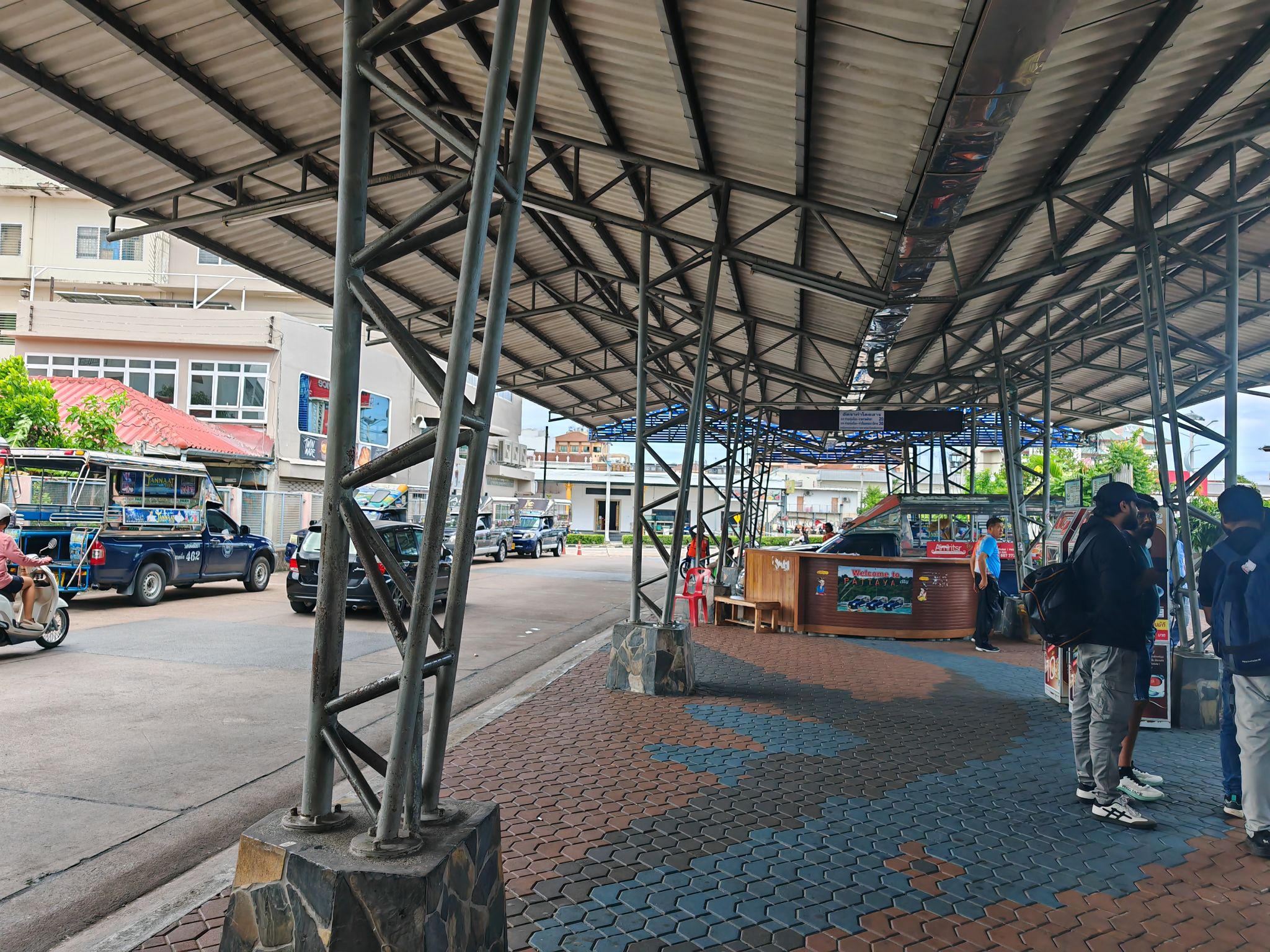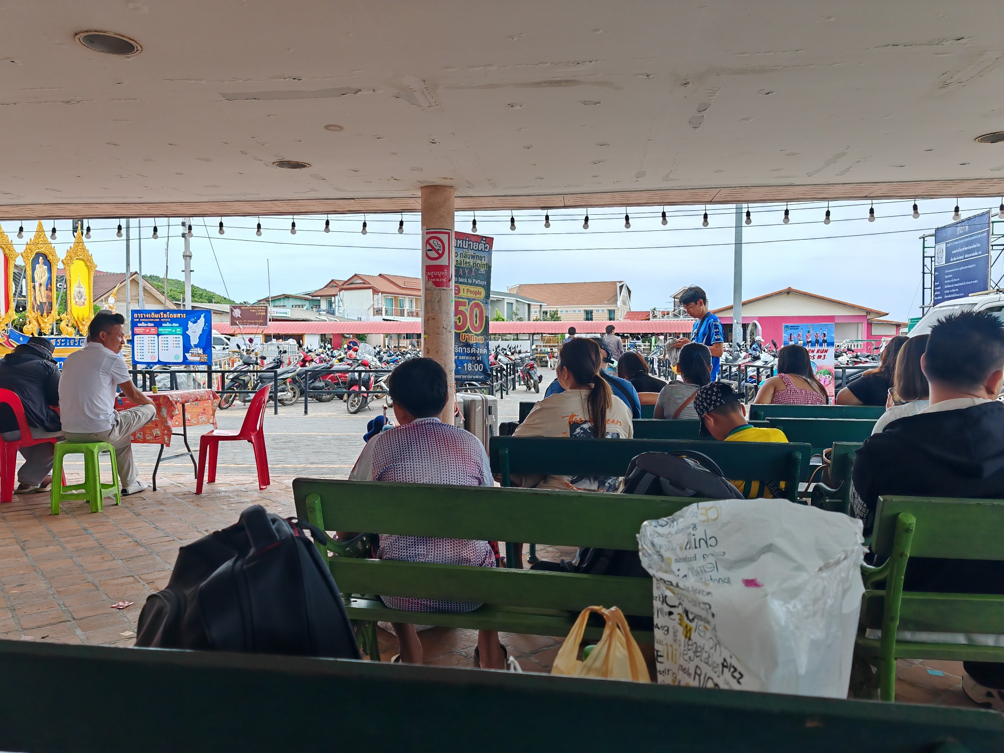 ใช้เวลาประมาณ 2 ชั่วโมงก็มาถึงท่ารถทัวร์ แล้วเราก็เดินไปขึ้นรถสองแถวไปลงที่ท่าเรือแหลมบารีไฮ ค่ารถคนละ 50 บาท
