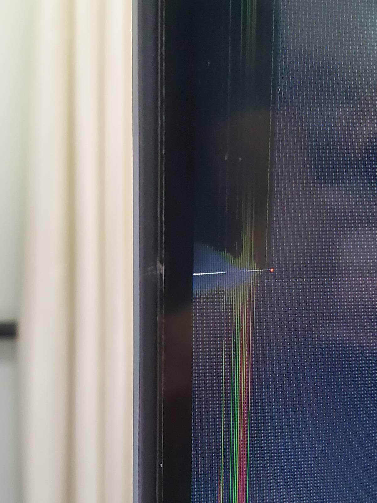 ตอนแรกเป็นแค่รอยที่ขอบ พอผมไปกดๆ ดู มันเริ่มขึ้นเป็นเส้นแนวตั้ง สักพักเป็นเส้นแนวนอน สักพักจอกระพริบ ตอนนี้จอสีเพี้ยนไปทั้งจอแล้วครับ 😢😢😢