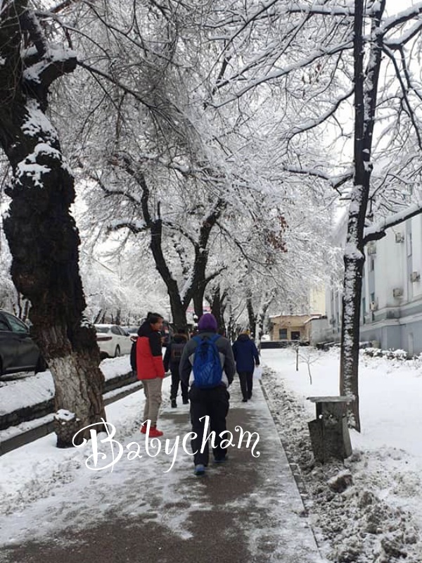 ตามร้านระหว่างทาง ก็จะมีการตักหิมะออกจากทางเข้าร้านเพื่อให้ลูกค้าเข้าร้านได้สะดวก น้ำแข็งเต็มทางเดิน ลูกค้าลื่นล้มขึ้นมาร้านเดือดร้อนค่ะ