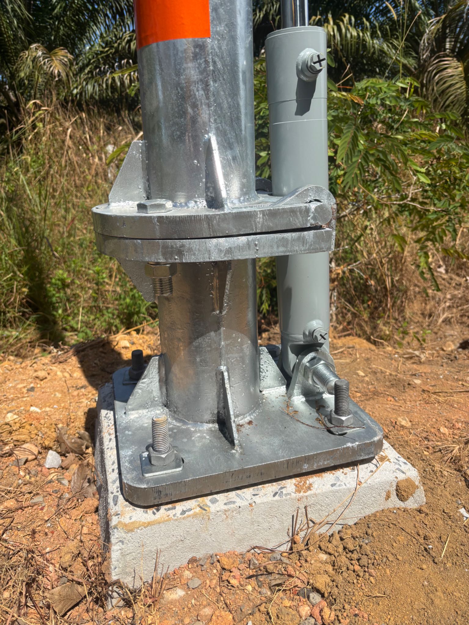 ที่มีกระบอกไฮดรอลิค แต่ไม่มีสายเข้าออก และมีน๊อตตัวเมียล๊อคฐานเสาไว้