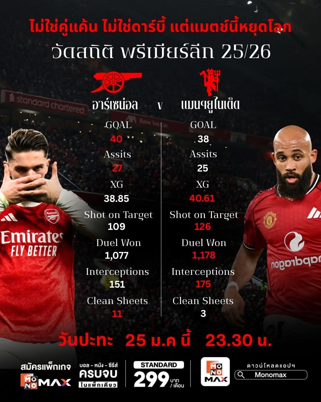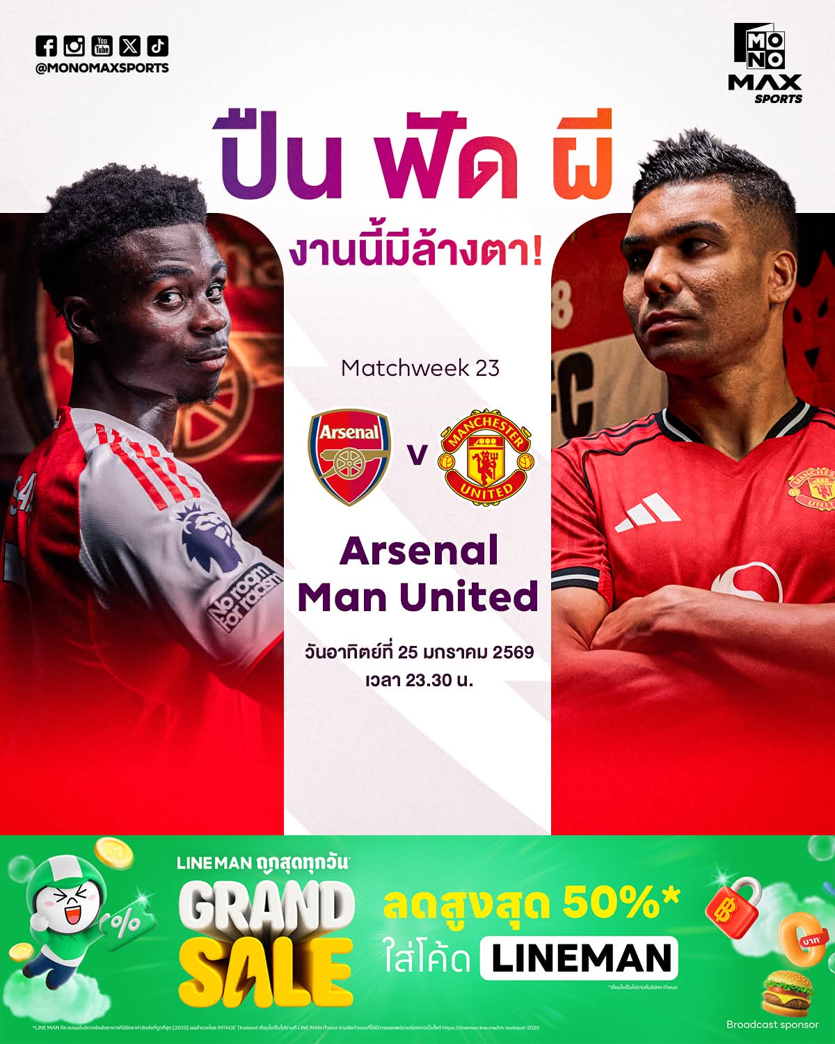 🆚 #Monomax 🔴 23:30 น. ⚽🏴 "ปืนใหญ่" ใส่เดือด "ผีแดง" 🔥 "ล้างตา หรือ ย้ำแค้น" 🫣
