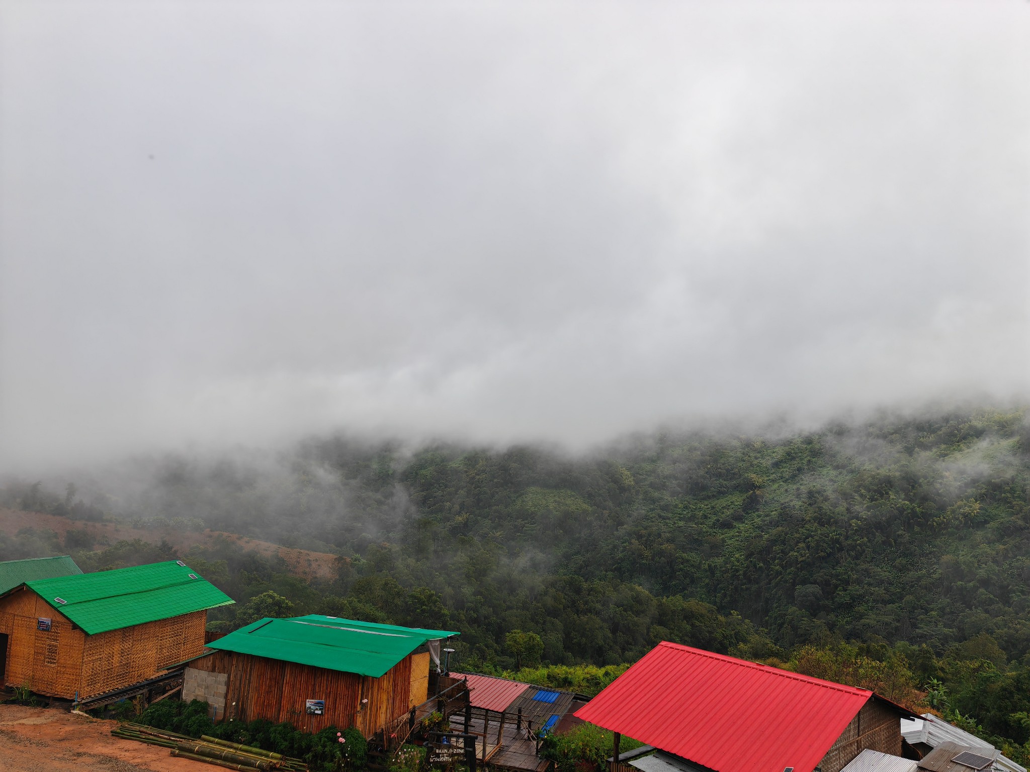ตื่นเช้ามากับวิวที่มองไม่เห็นอะไรเลยเพราะฝนตกไม่หยุด T-T