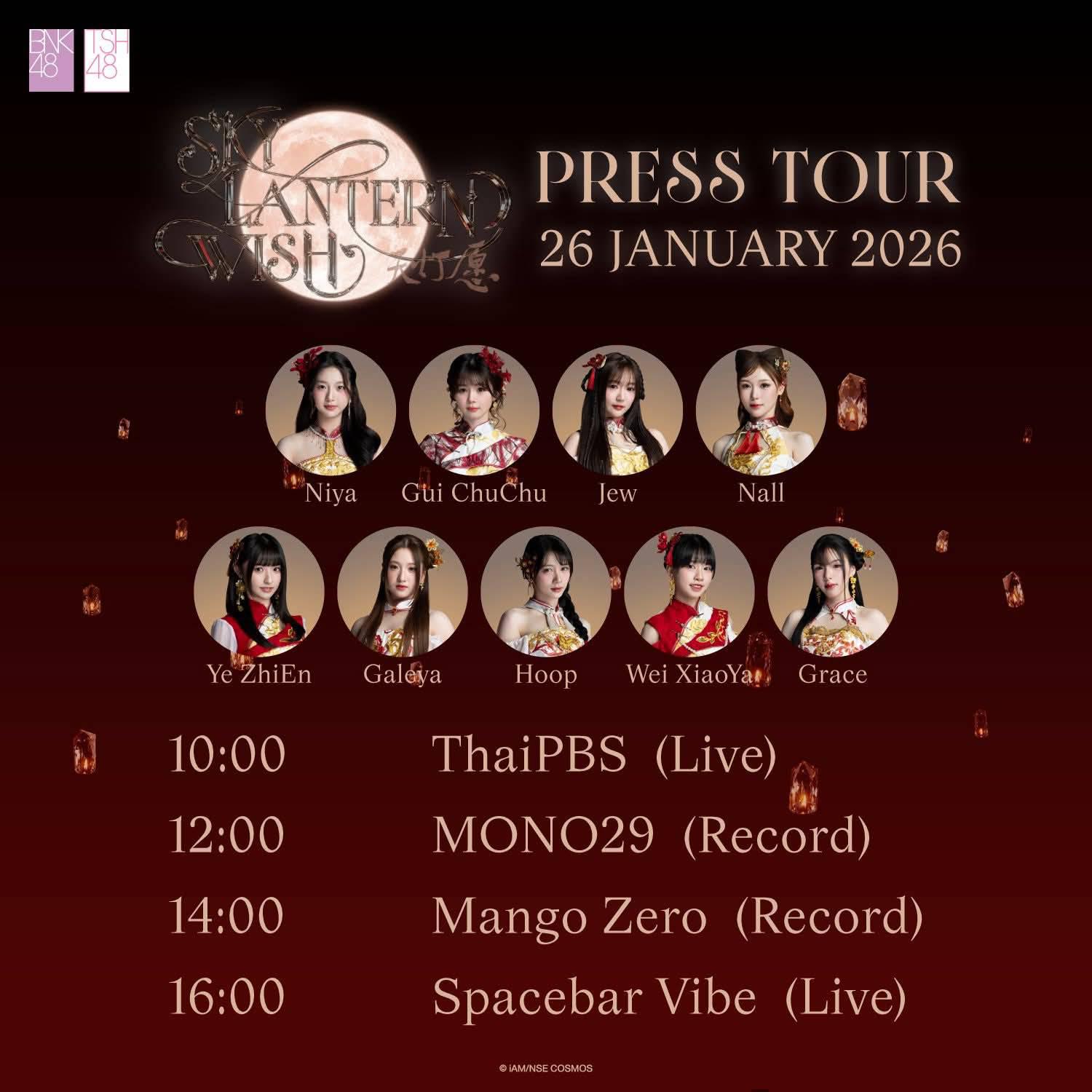 BNK48 & TSH48 Special Single"Sky Lantern Wish"First Performance วันเสาร์ที่ 24 มกราคม 2569ณ ศูนย์การค้าเอ็ม บี เค เซ็นเตอร์ เริ่มการแสดงเวลาประมาณ 12.00 น. ถ่ายทอดสดผ่านทาง YouTube ช่อง