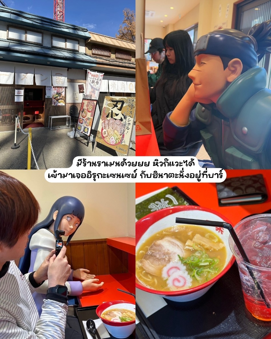 มีร้านราเมนด้วยยยย เข้ามาเจออิรุกะเซนเซย์ และยัยหนูฮินาตะนั่งอยู่ ใครอยากได้ฟีล หรือหิว ๆ สามารถแวะทานได้เลยย-นอกจากโซนหมู่บ้าน รอบ ๆ สวนสนุกคือสวยมากกกก จุดถ่ายรูปเยอะ ร้านอาหารด้านในก็เยอะ บอกเลยว่าอยู่ได้ทั้งวันค่าาา