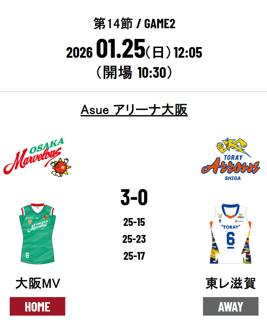Osaka Marvelous 3 - 0 Toray Arrows Shiga