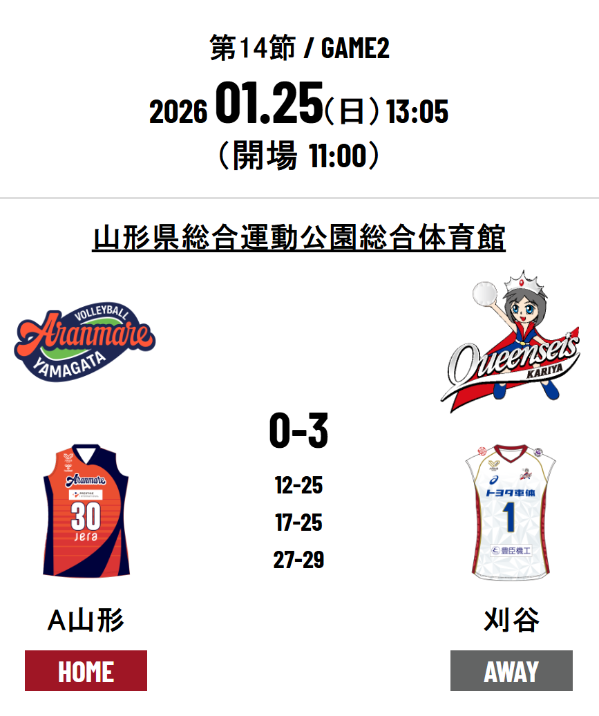 Aranmare Yamagata 0 - 3 Queenseis Kariya