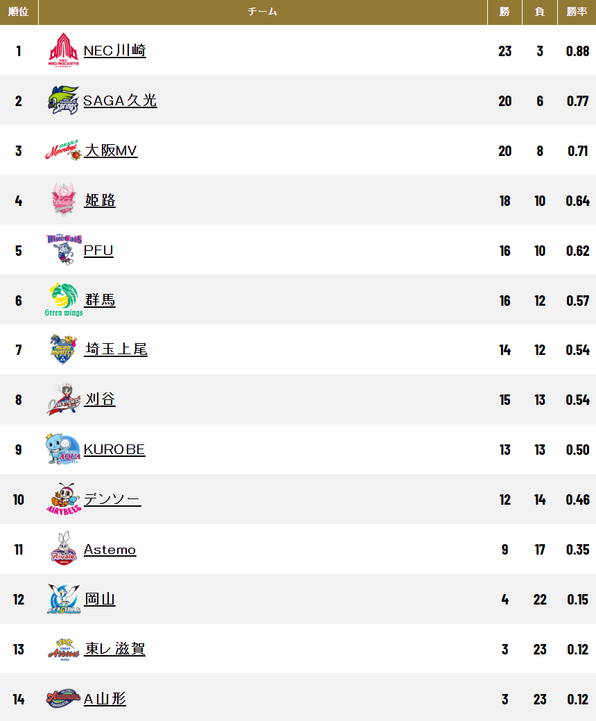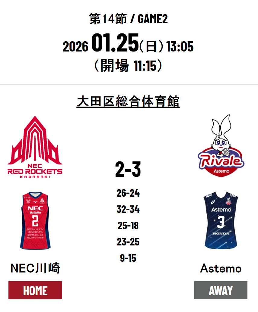 NEC Rockets Kawasaki 2 - 3 ASTEMO Rivale Ibaraki