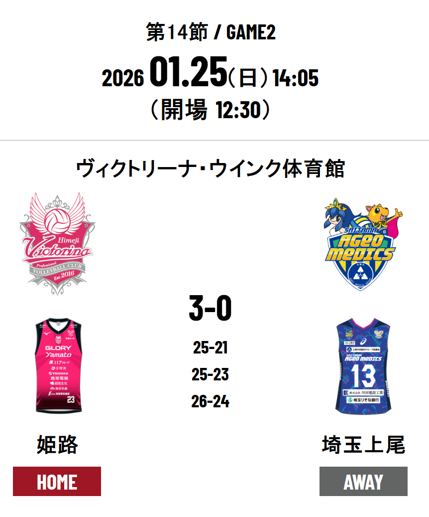 Victorina Himeji 3 - 0 Saitama Ageo Medics