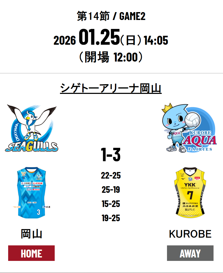 Okayama Seagulls 1 - 3 KUROBE Aqua Fairies